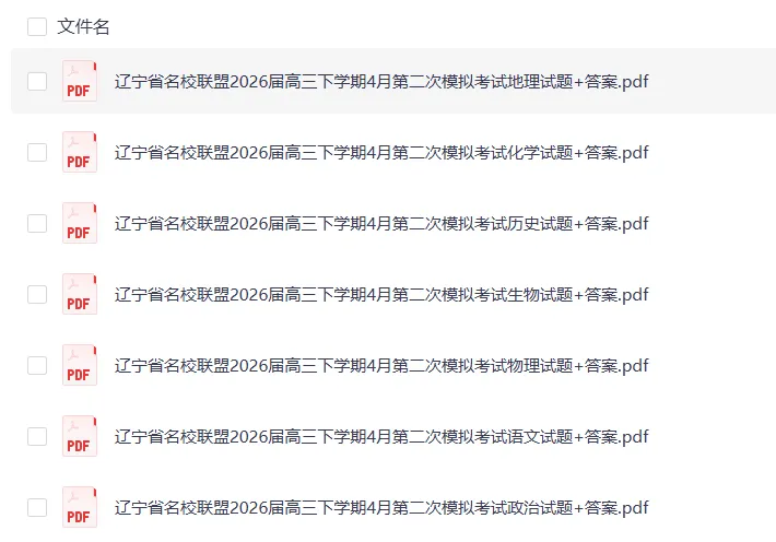 2026春辽宁名校联盟高三下学期4月模拟考试试卷+答案,文档目录如下,完整版下载方式见文末。