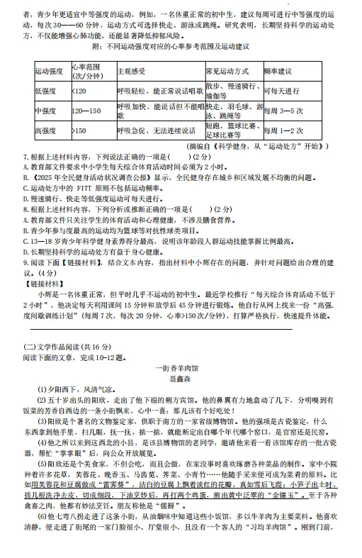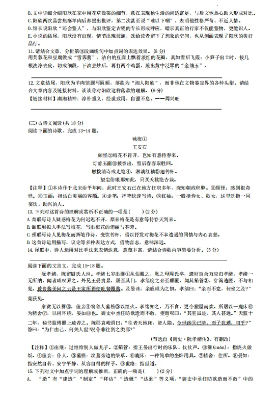 2026年上海市闵行区高三二模语文试卷(含答案)