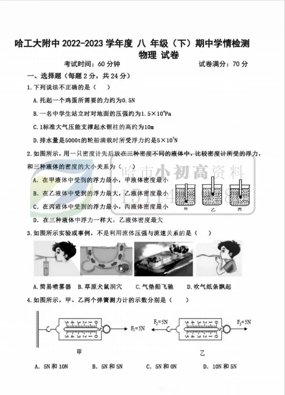 当前位置:首页>考研真题>八年级下册物理期中考试试卷免费领