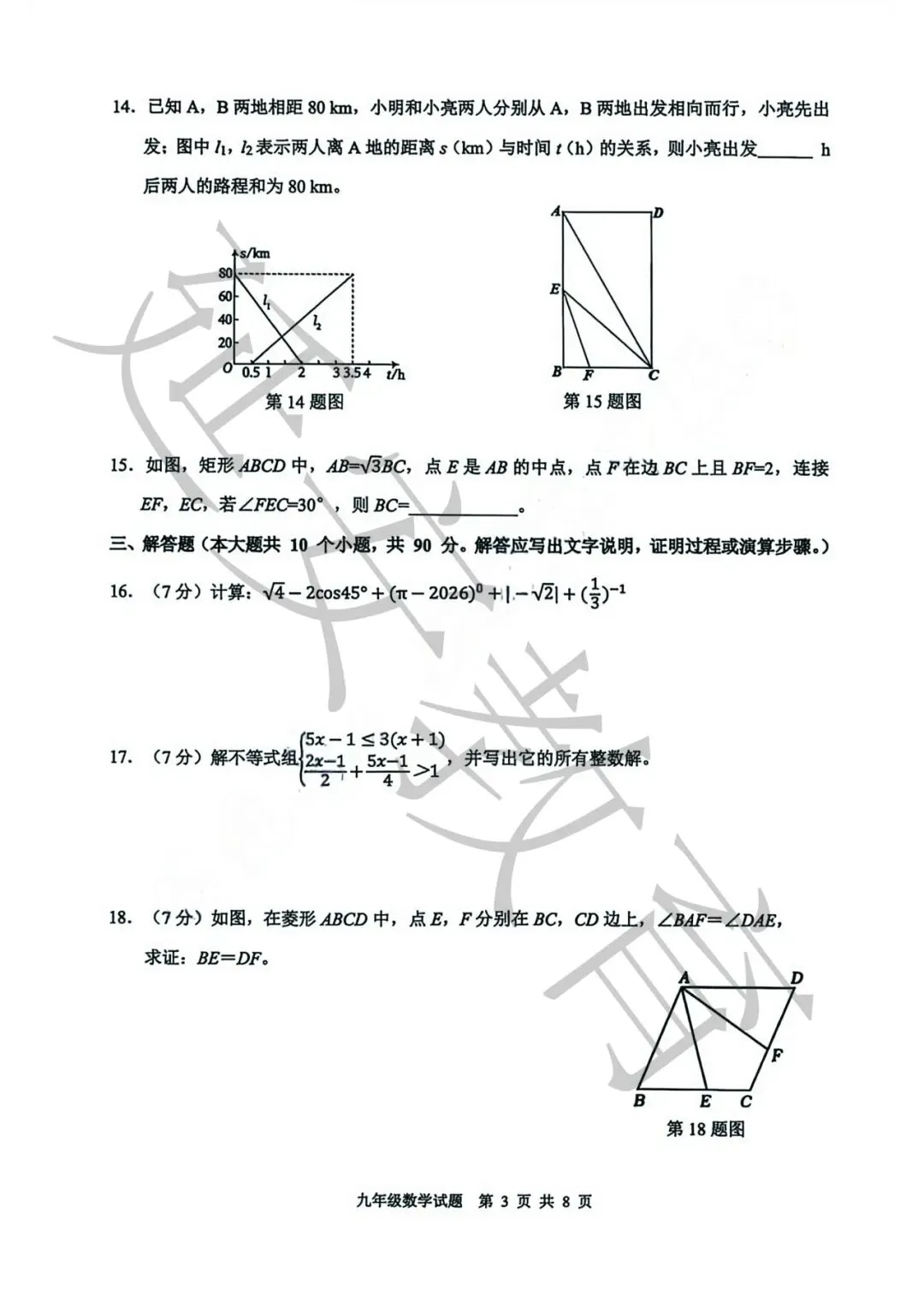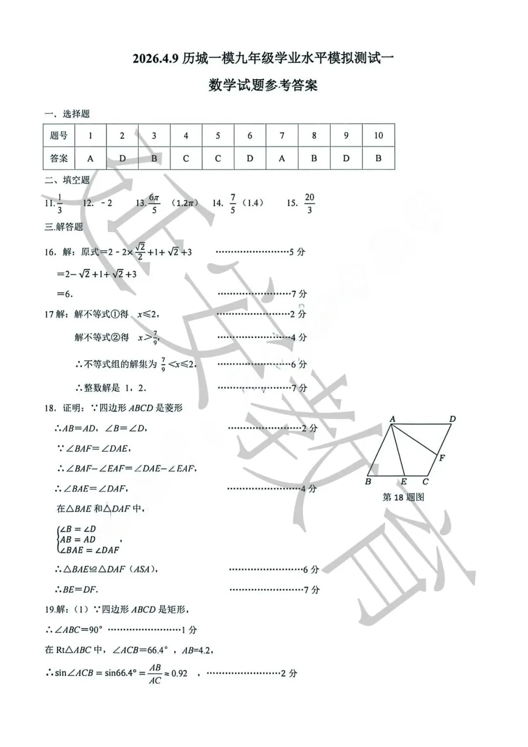 今天,延安教育第一时间为大家带来2026年4月济南历城区初三一模数学试卷,以图片形式分享给各位同学。趁热打铁,建议同学们尽快独立完成,对照答案认真分析,找出自己的薄弱环节,为接下来的二轮复习明确方向。