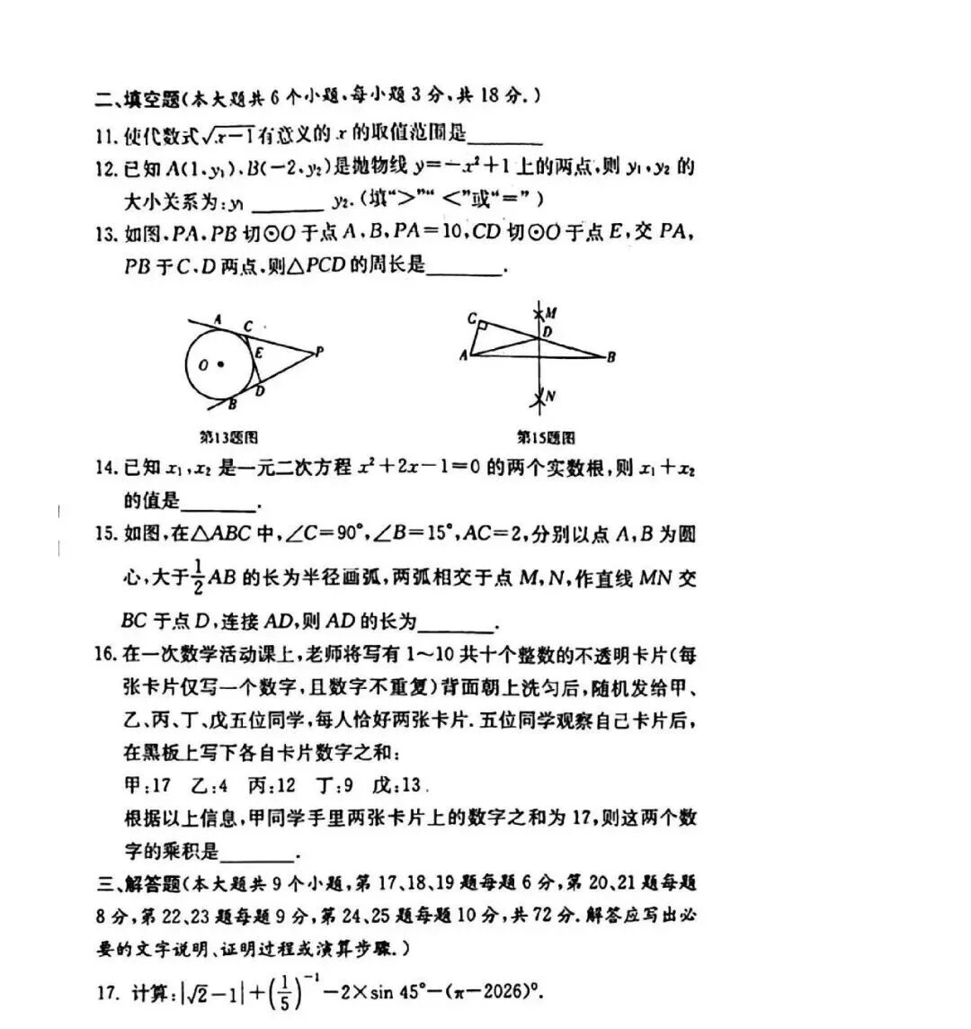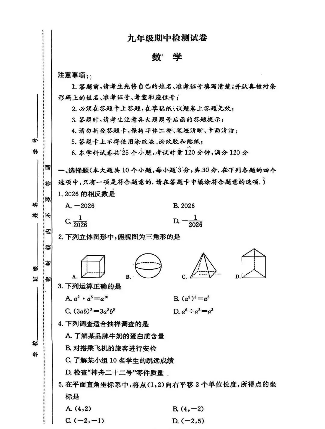 2026年4月济南历城区初三一模数学试卷|新鲜出炉,真题速领
