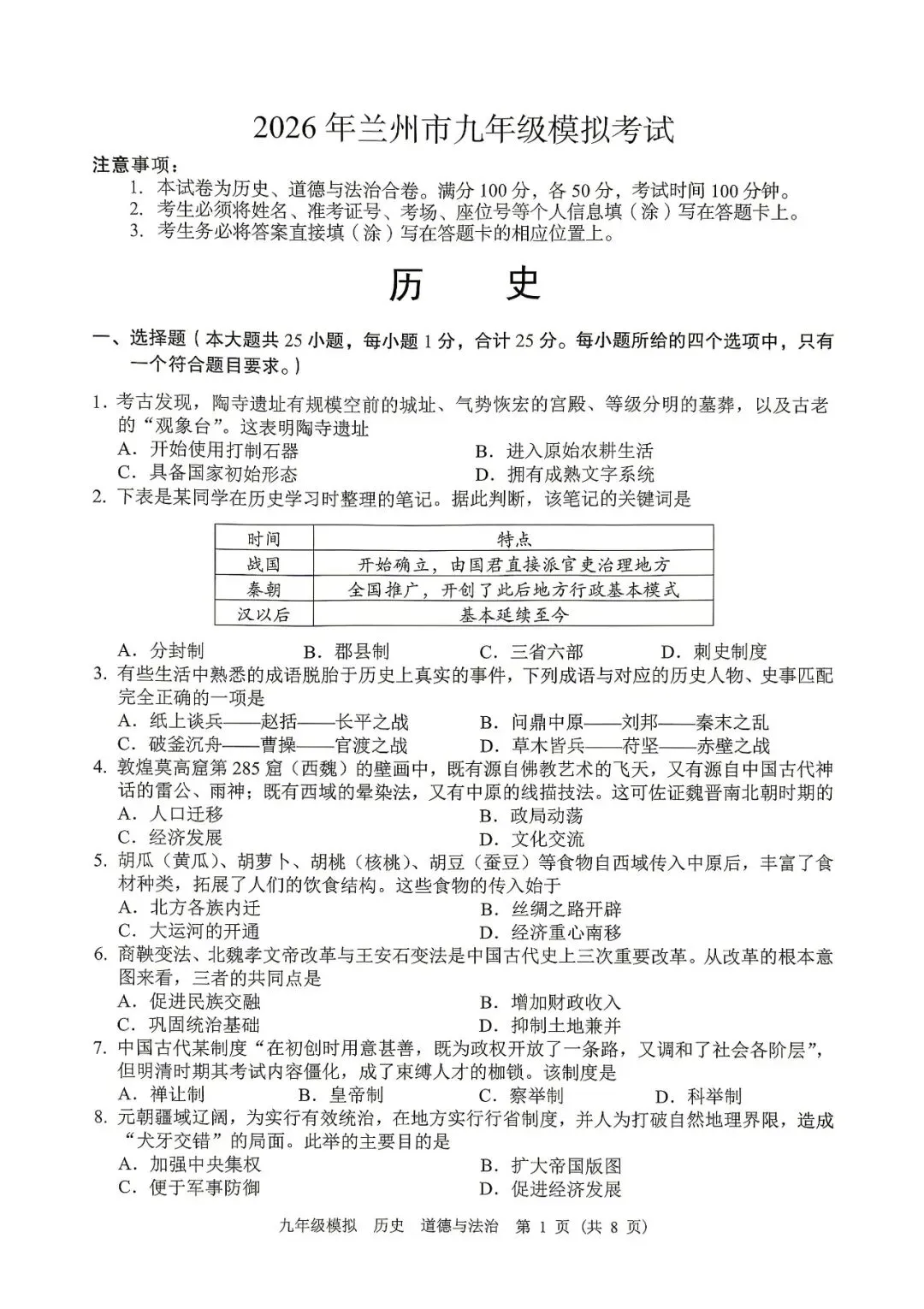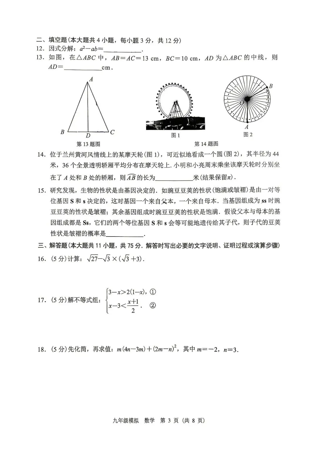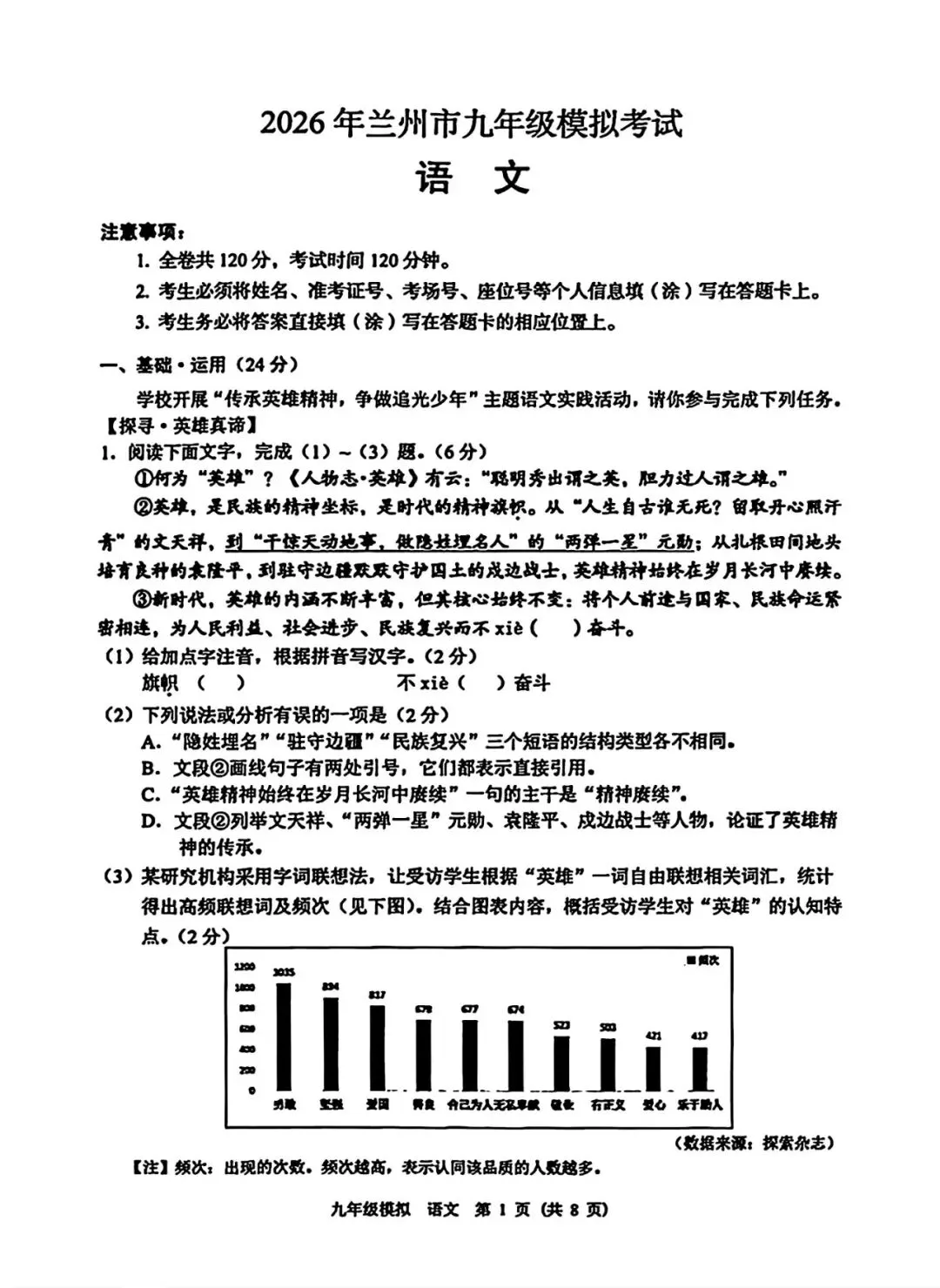 2026年4月济南历城区初三一模数学试卷|新鲜出炉,真题速领