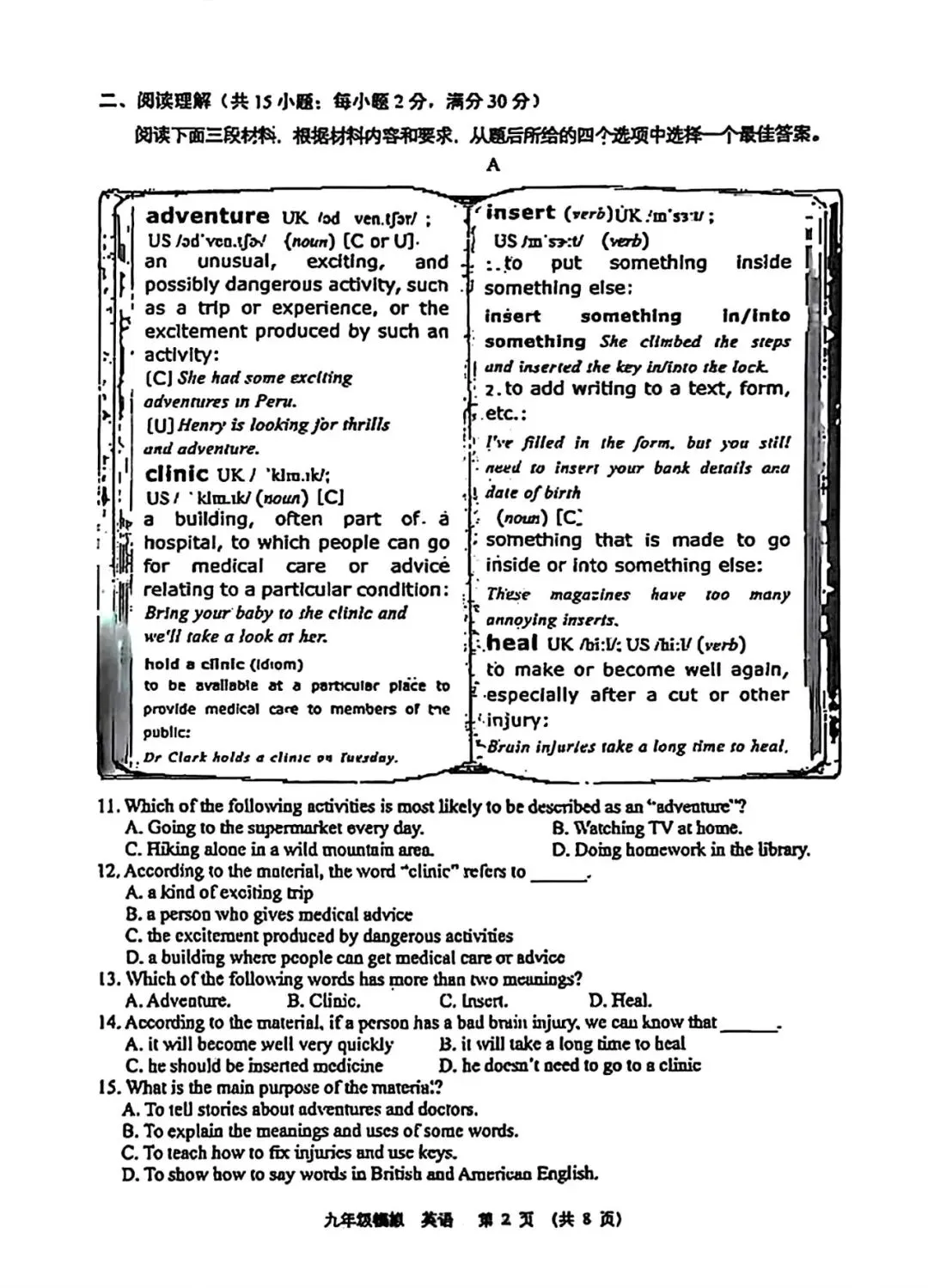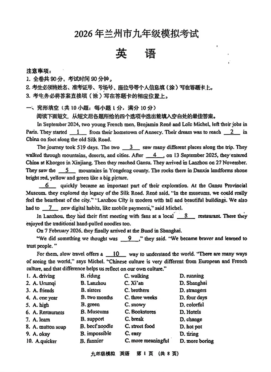 【试卷推荐】2026届嘉兴二模英语试卷及答案详解