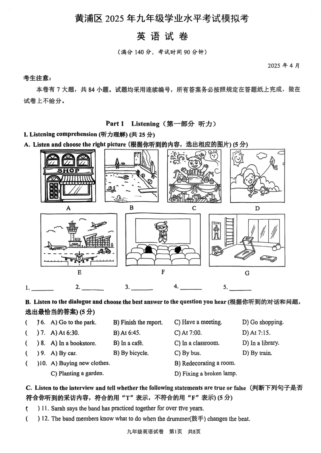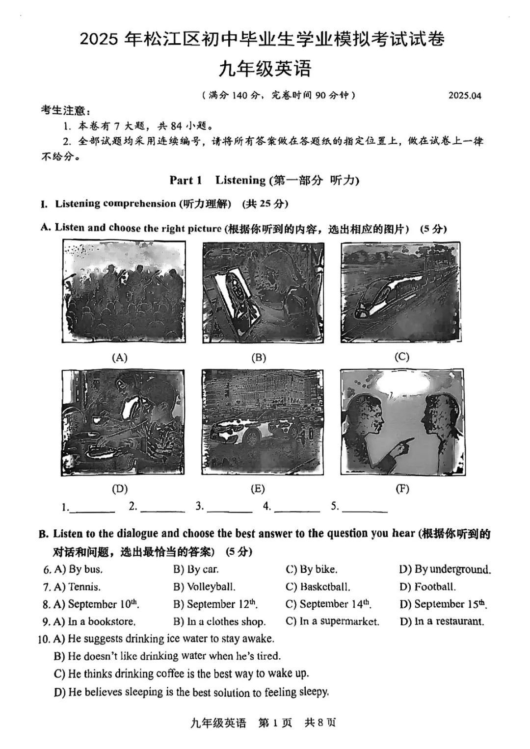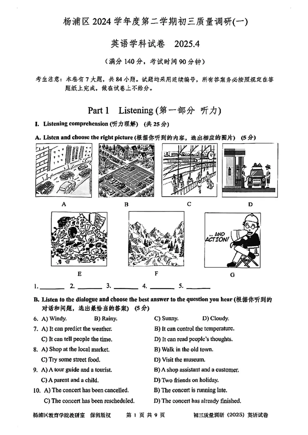>2025上海各区初三二模英语试卷及答案