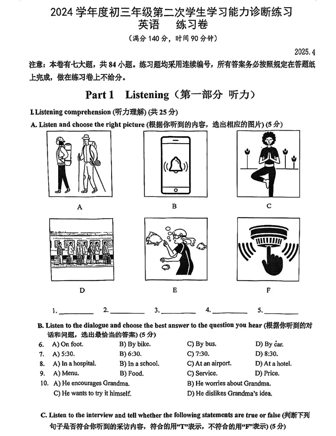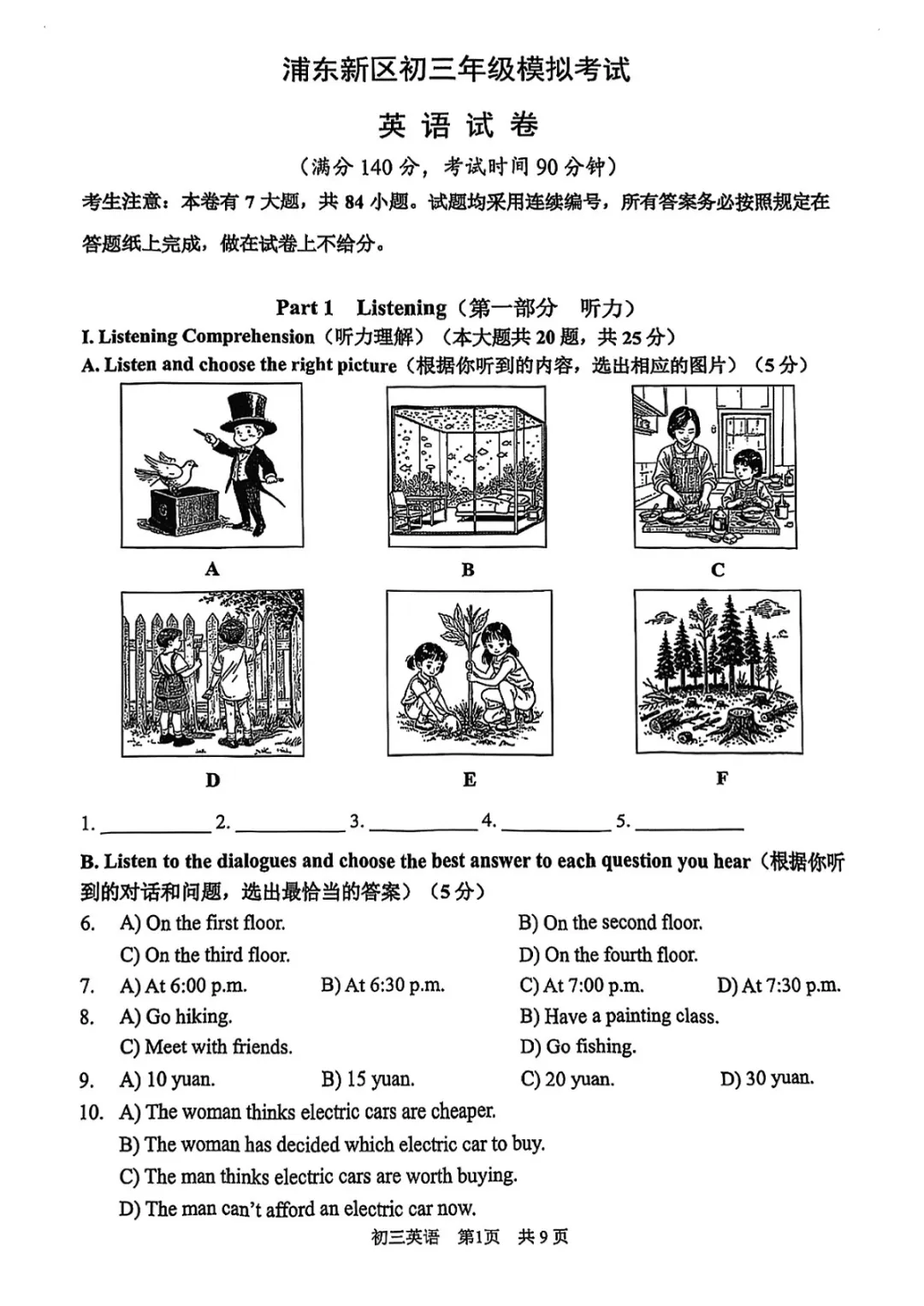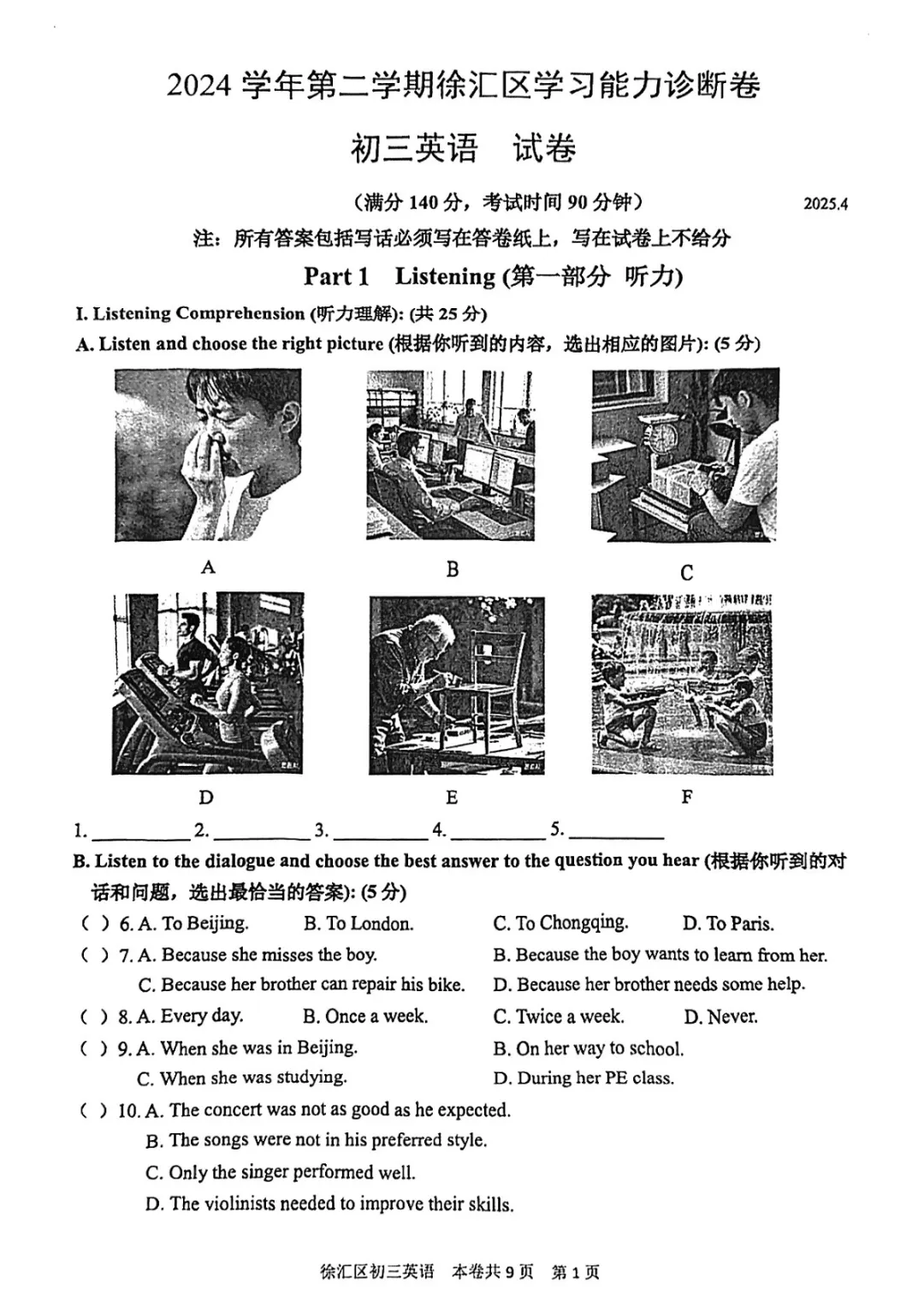 >2025上海各区初三二模英语试卷及答案