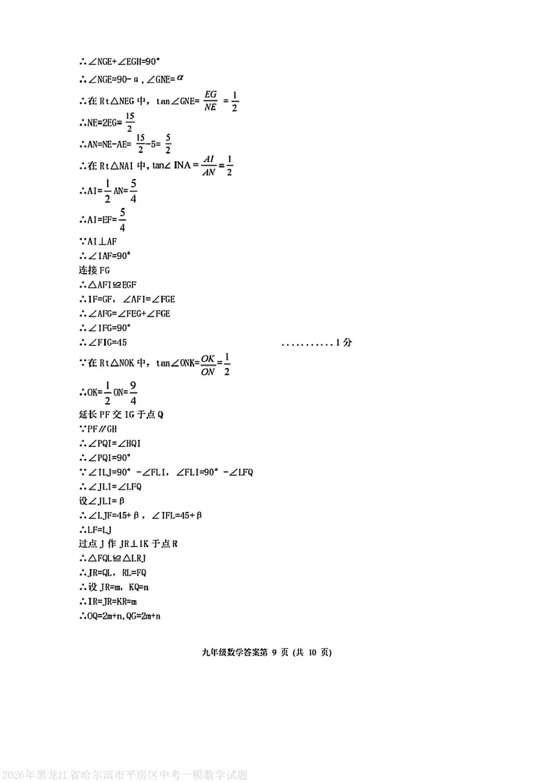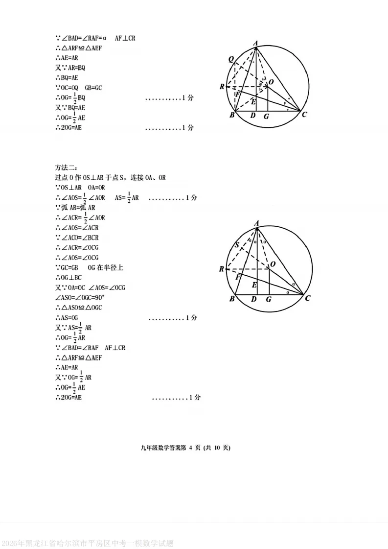 >2026平房区九下数学一模试卷及答案