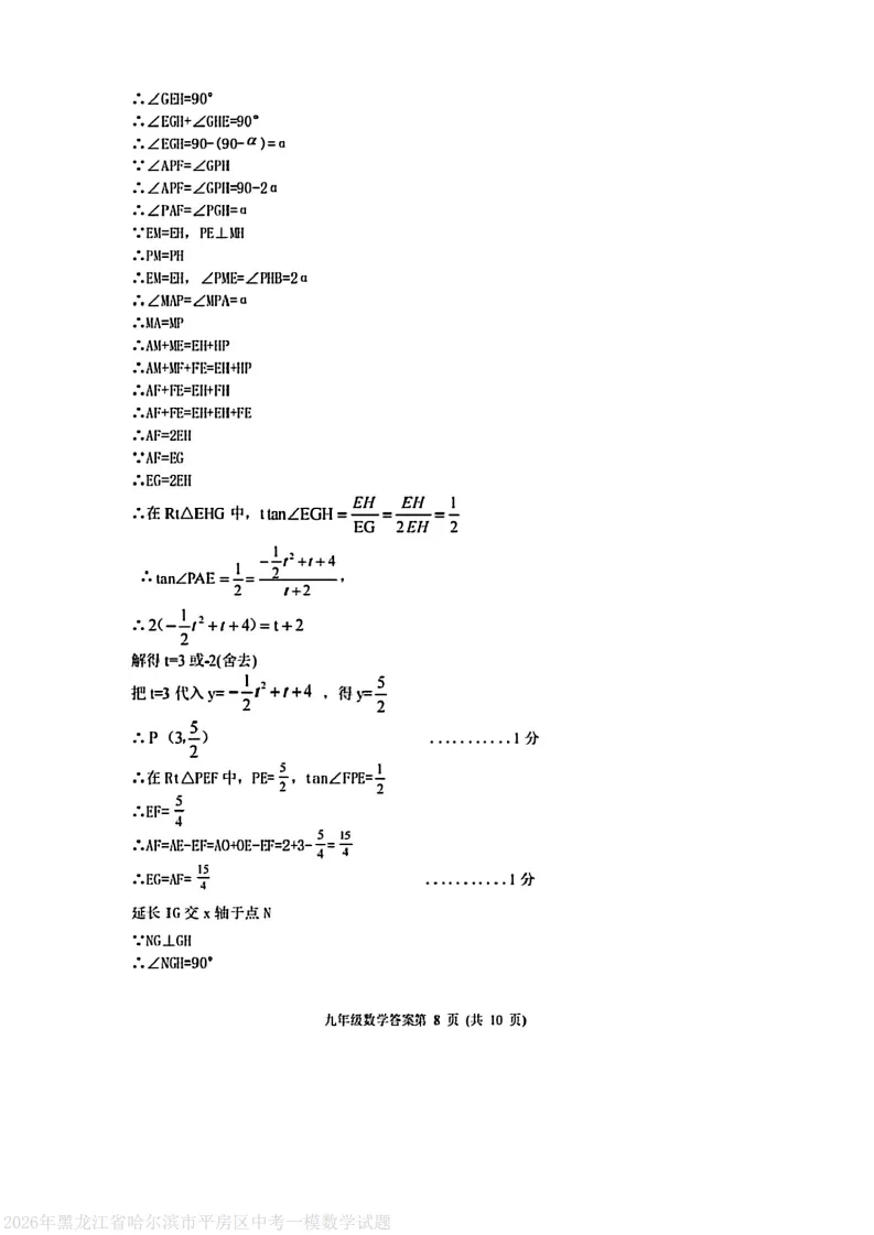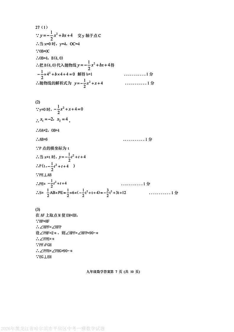 2026平房区九下数学一模试卷及答案