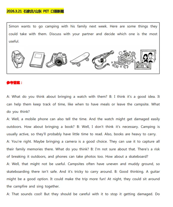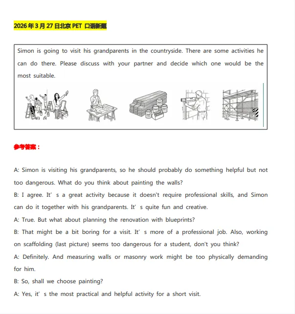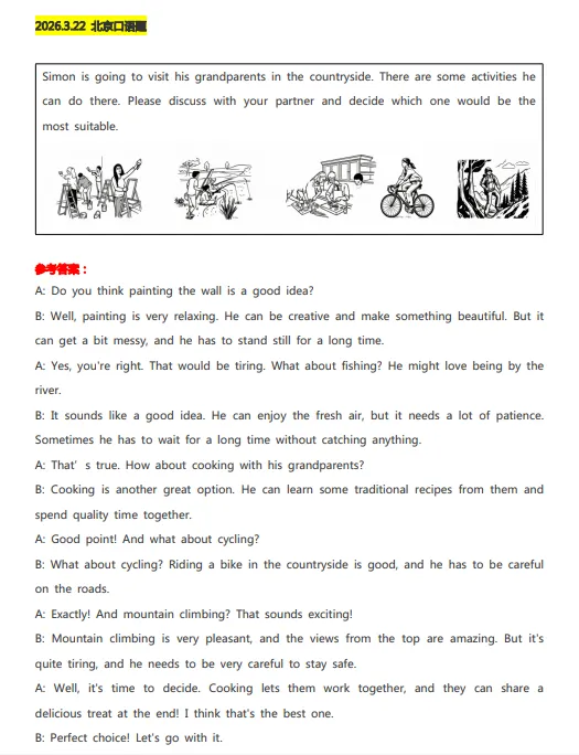 B:What about cycling? Riding a bike in the countryside is good, and he has to be careful on the roads.