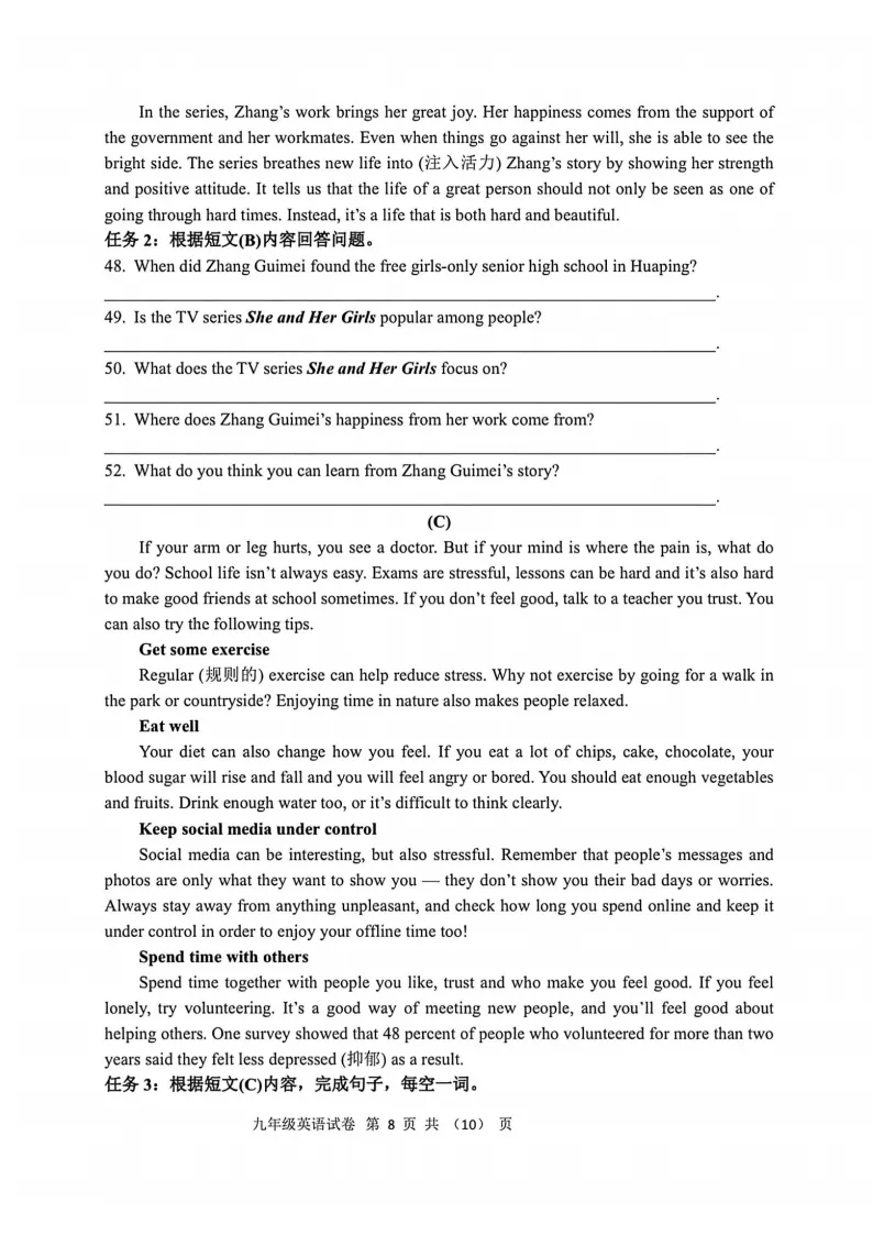 2025上海各区初三二模英语试卷及答案