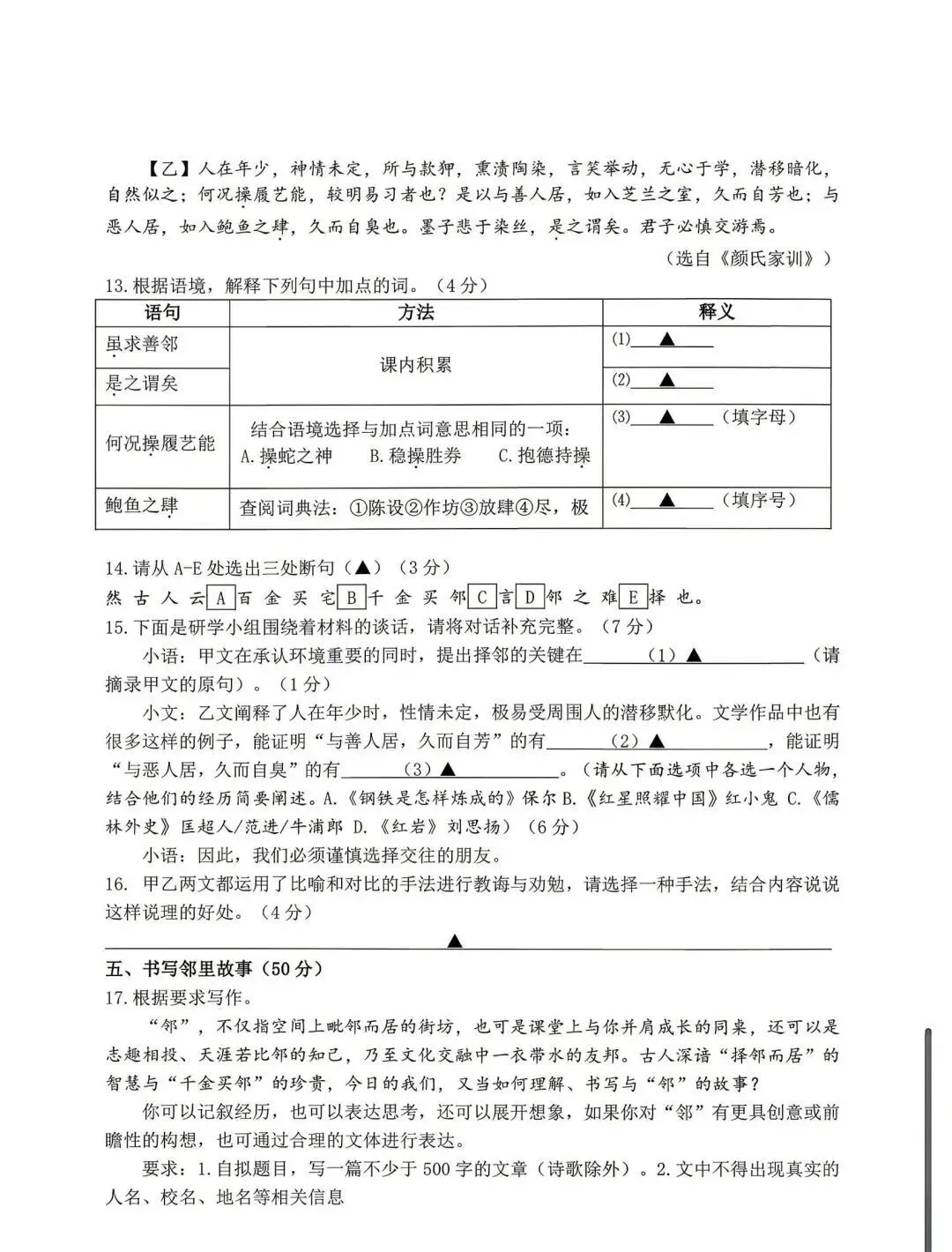 【2026浙江期末】杭州市上城区期末试卷【七八九】(语数英科社)