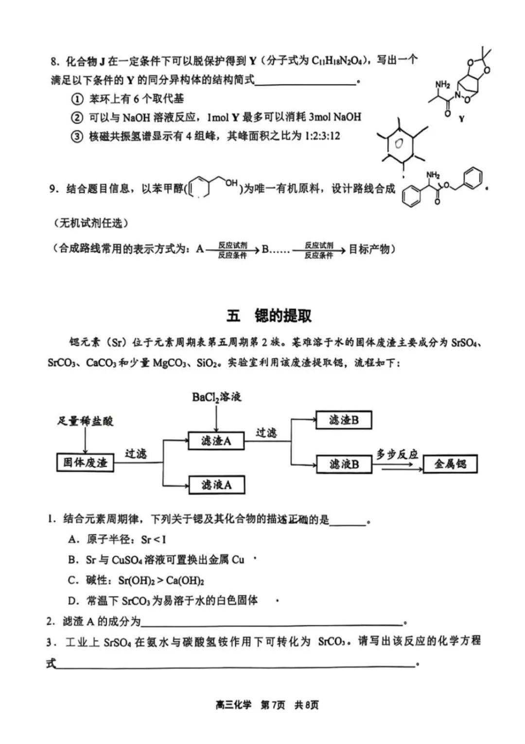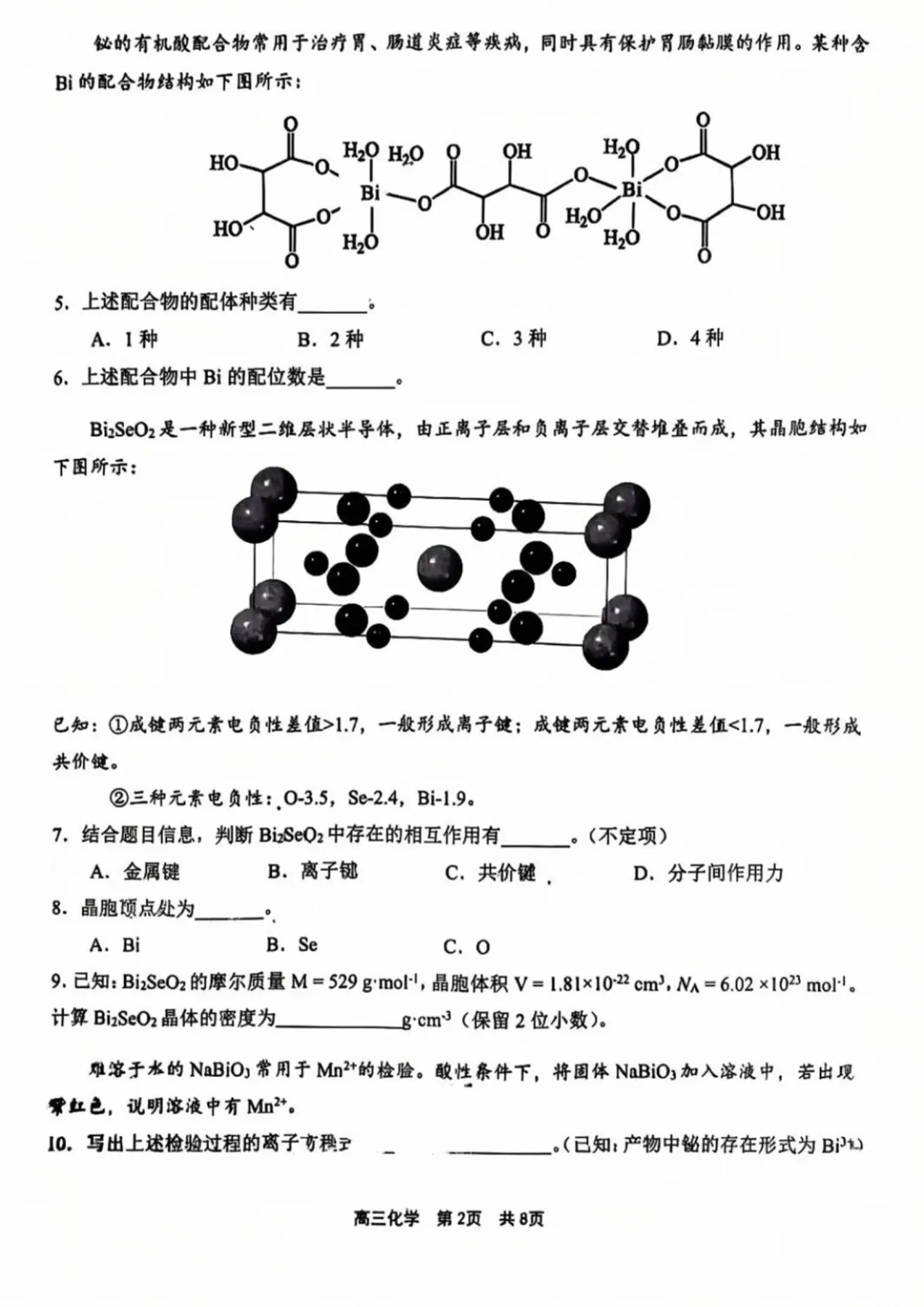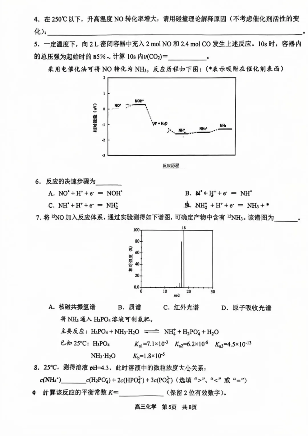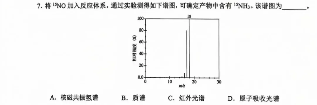 第7小题,考察分析物质结构的方法,在知识手册中给出了所有常见图谱的意义与例图。