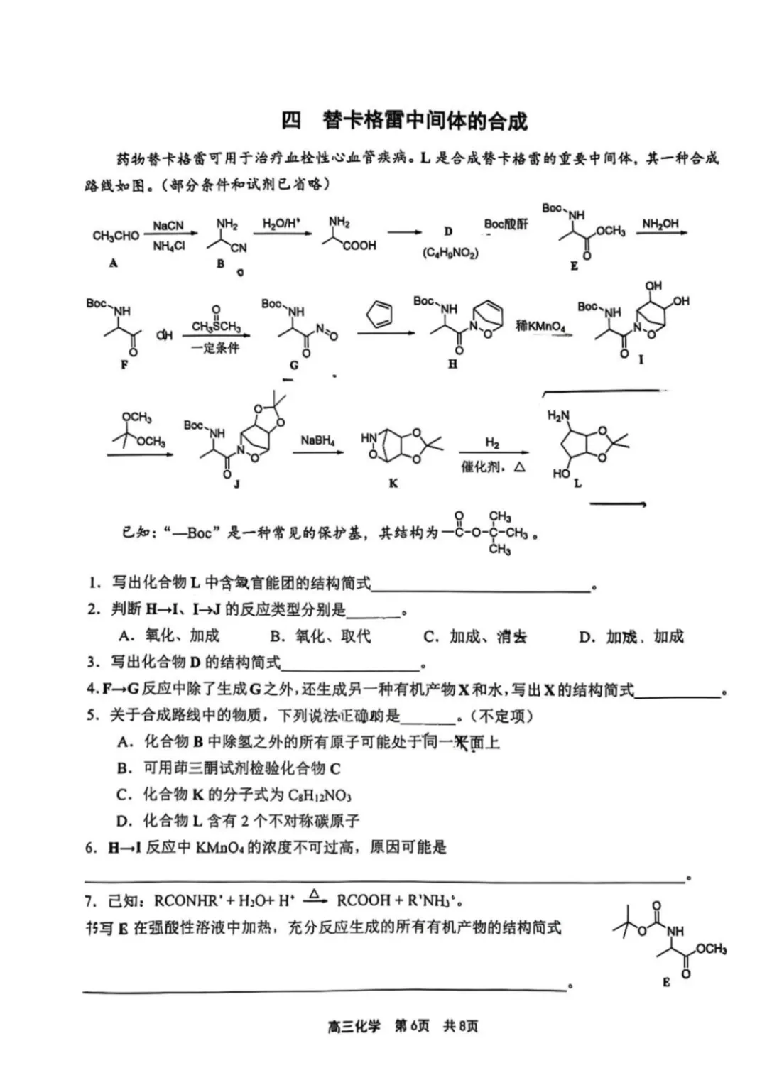 第6小题,强氧化剂不过量的原因,在课程中又被反复提及。