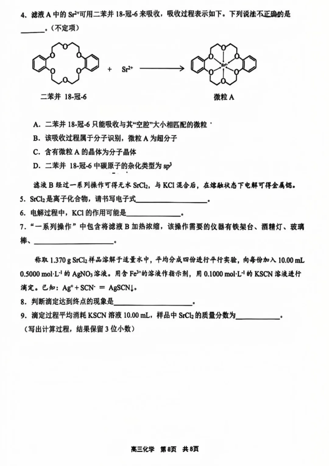 第6小题,电解xxx时加入xxxx的作用,参考电解氧化铝,考前有专门复习。