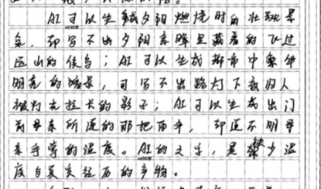 从前,“吟安一个字,捻断数茎须”,为了琢磨作品,须得反复推敲;而今,“喂给豆包”,“调教deepseek”已是常态,往往只需要给它下一个指令,它就能生成一篇符合要求的文章。反正是应付任务而已,AI一下,更快捷方便,成了许多人追求效率的第一选择。