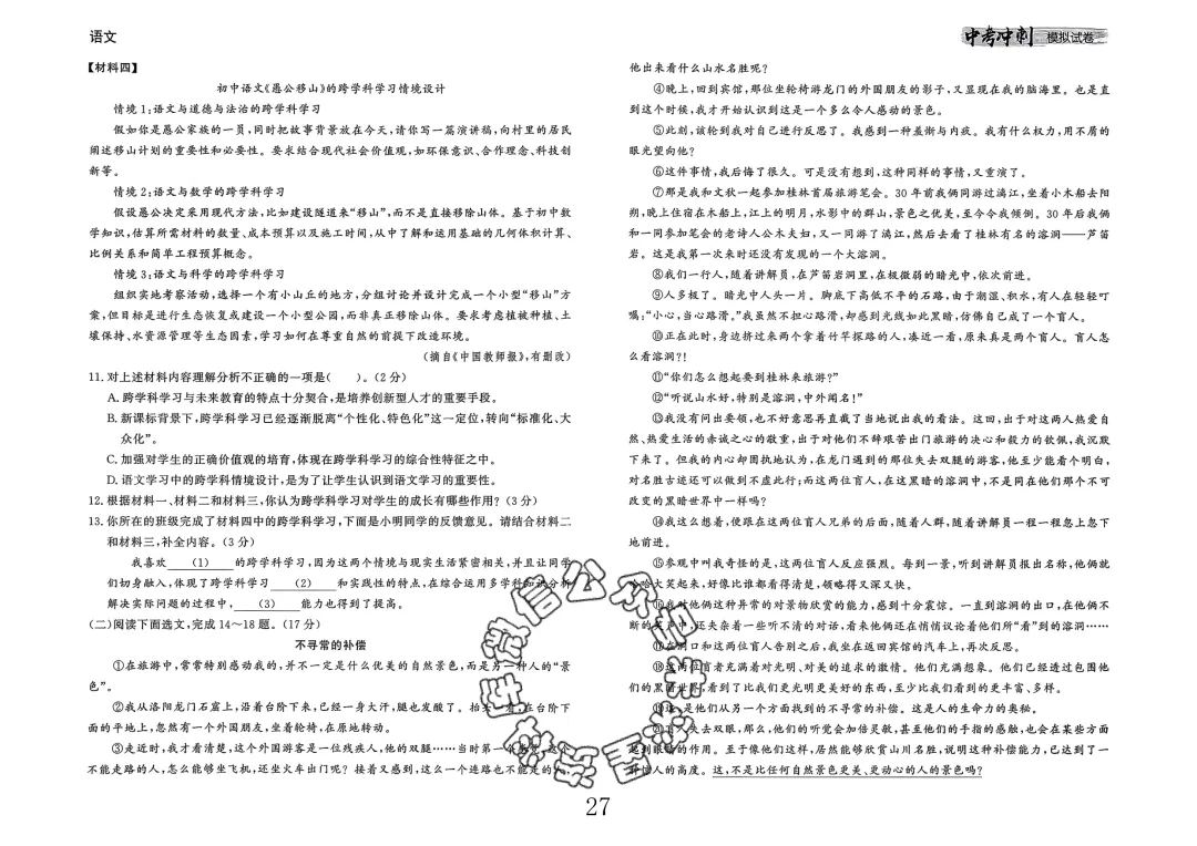 >26春-中考冲刺模拟试卷10套-语文(含答案)