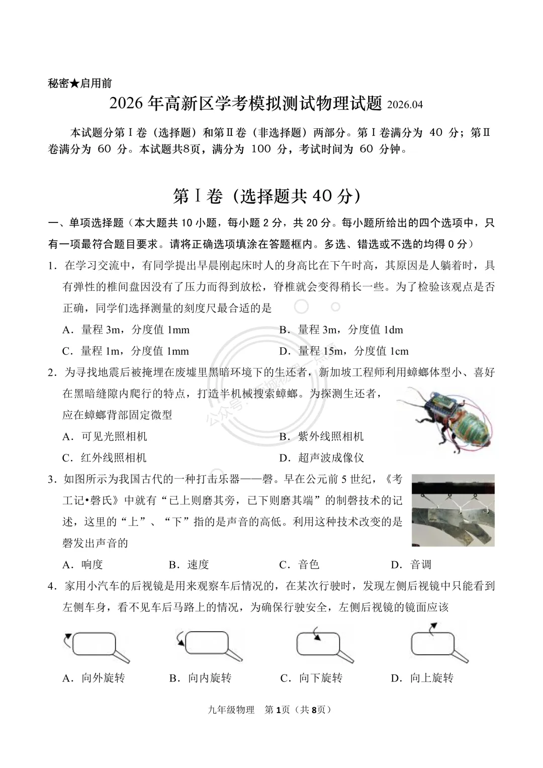 >【中考】2026.4济南高新区一模物理试卷及答案!