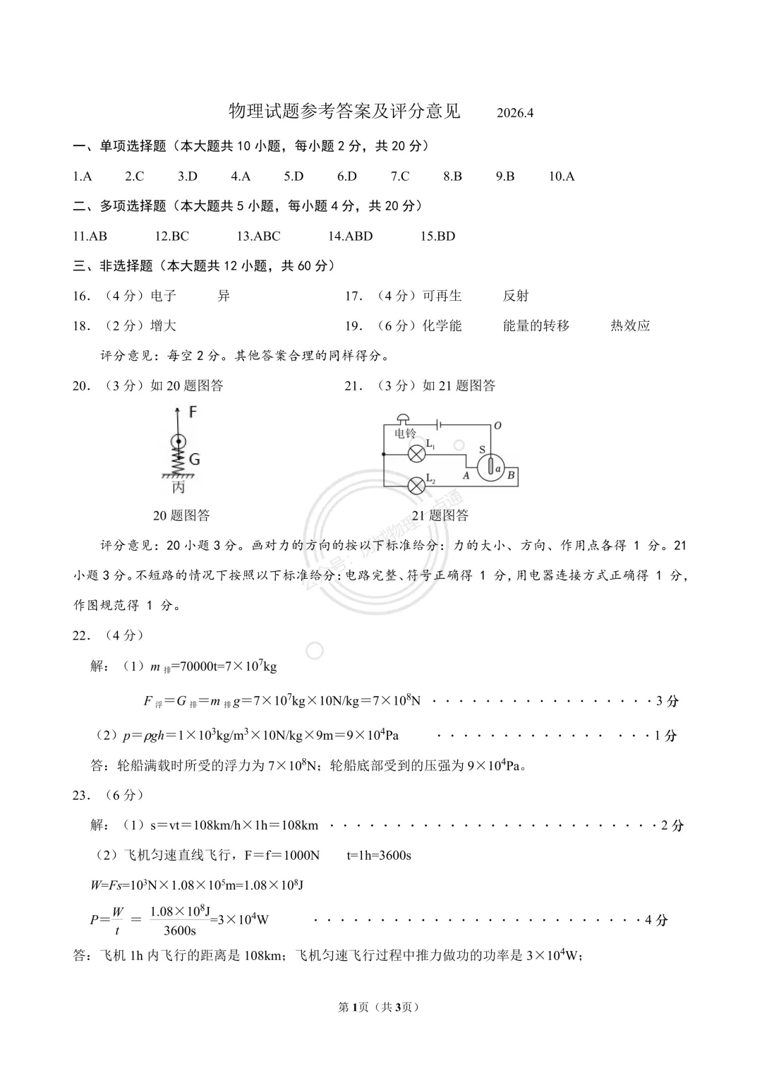 一模物理