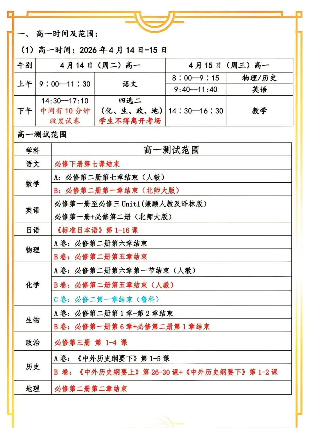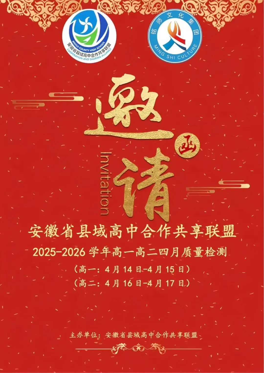 考试名称:安徽省县中联盟2025-2026学年高一高二4月联考质量检测