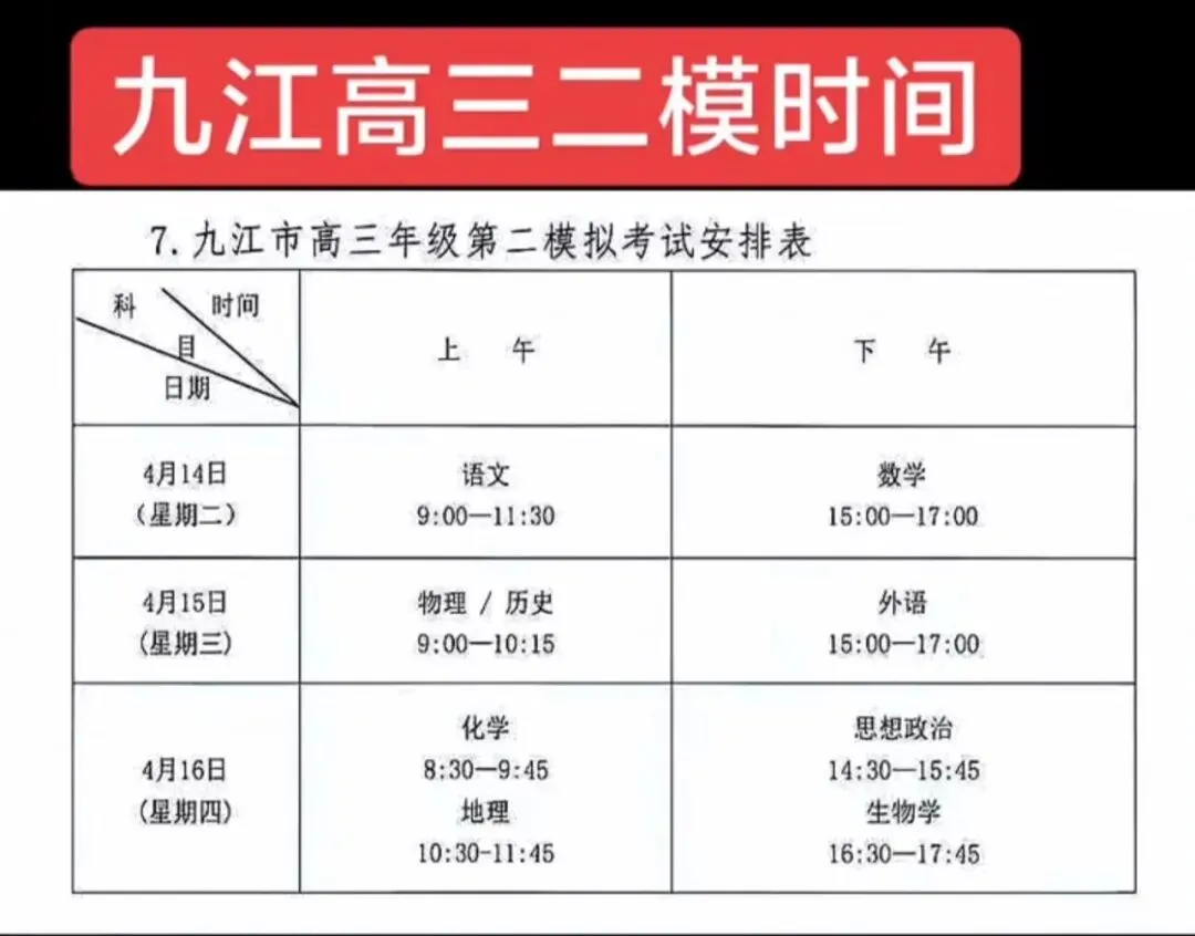 考试名称:九江二模九江市2026年高三第二次高考模拟统一考试