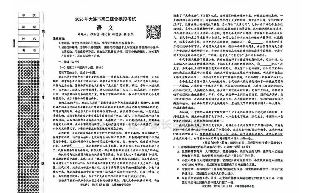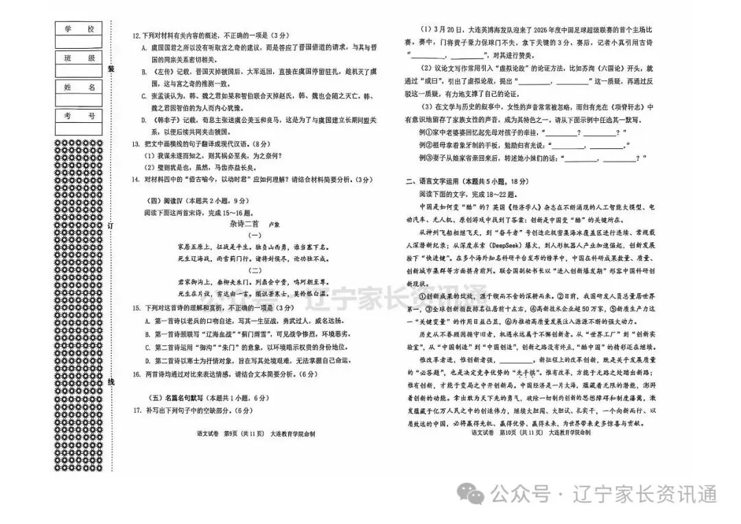 2026年长春市博硕学校七下4月考语文试卷(附答案)