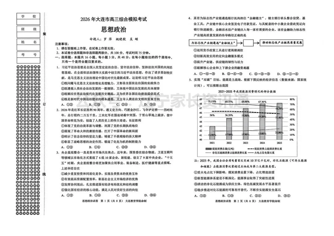 【试卷+解析】九江二模九江市2026年高三第二次高考模拟统一考试全科汇总!