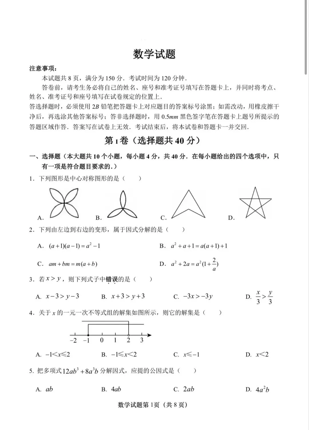 2026年兰州中考一诊 | 数学试卷+解析