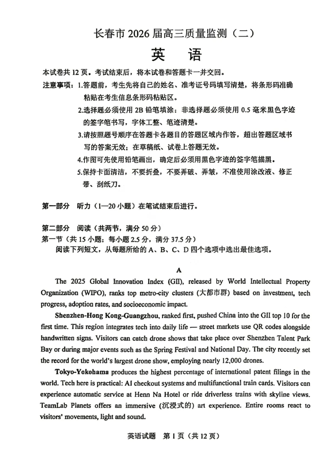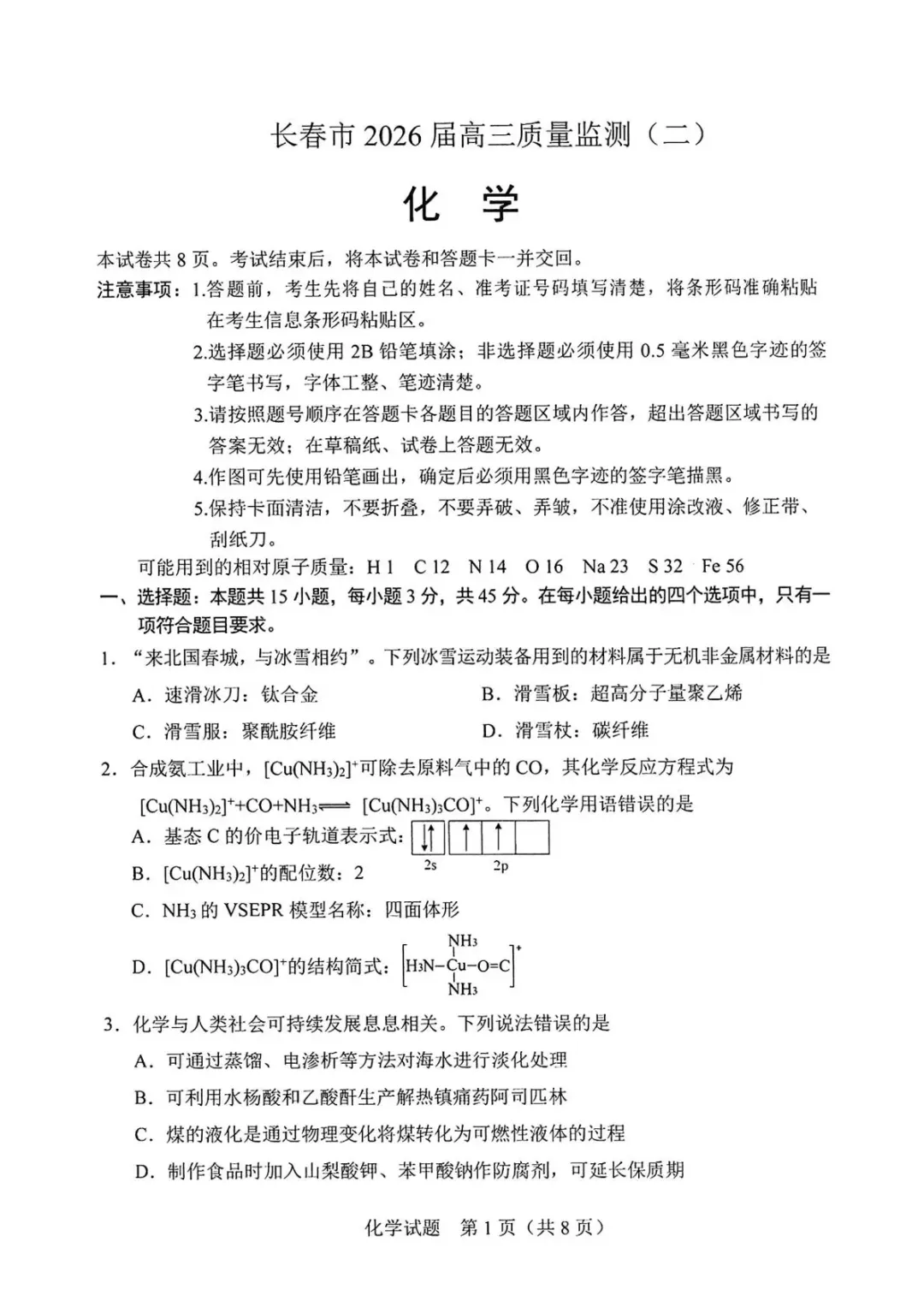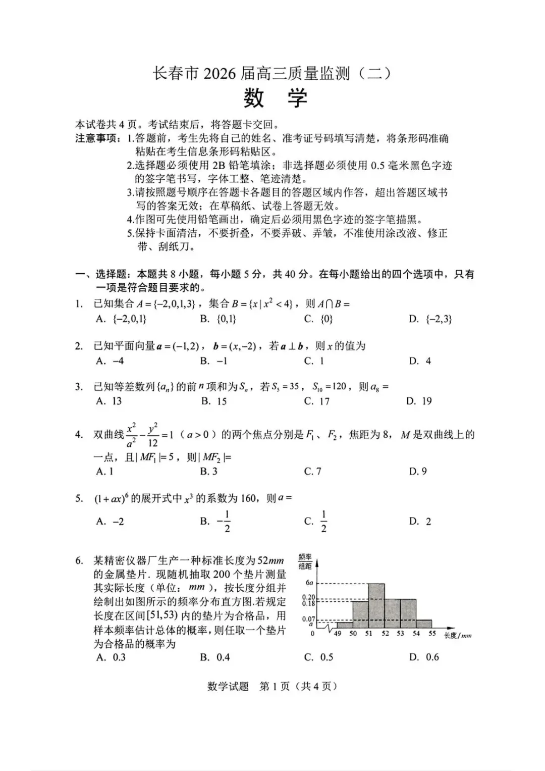 >2026届长春高三二模全科试卷及答案