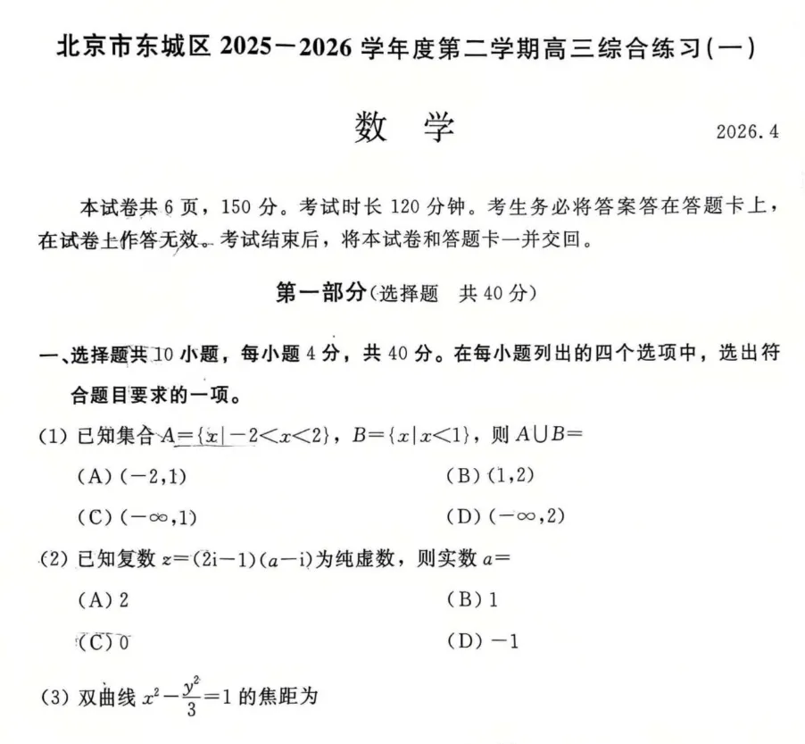 *东城、海淀、西城试卷搜集中,