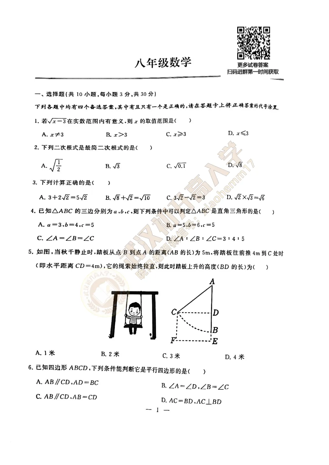 即可免费领取试卷及答案