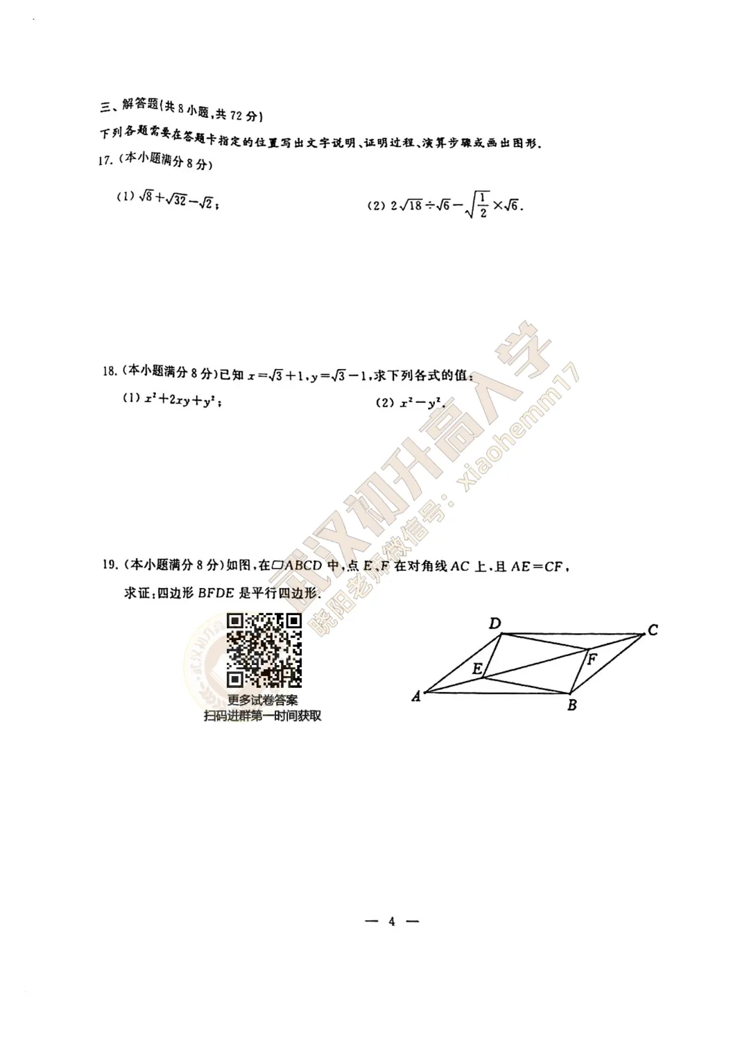 江岸区2024-2025学年8下数学期中试卷