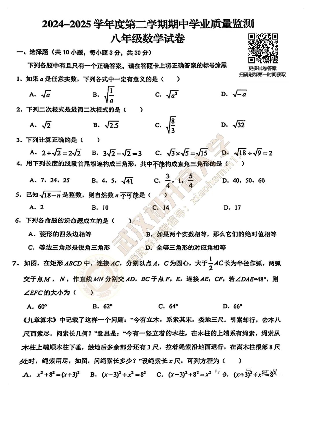 【八年级江岸区数学期中试卷】2024-2025下学期