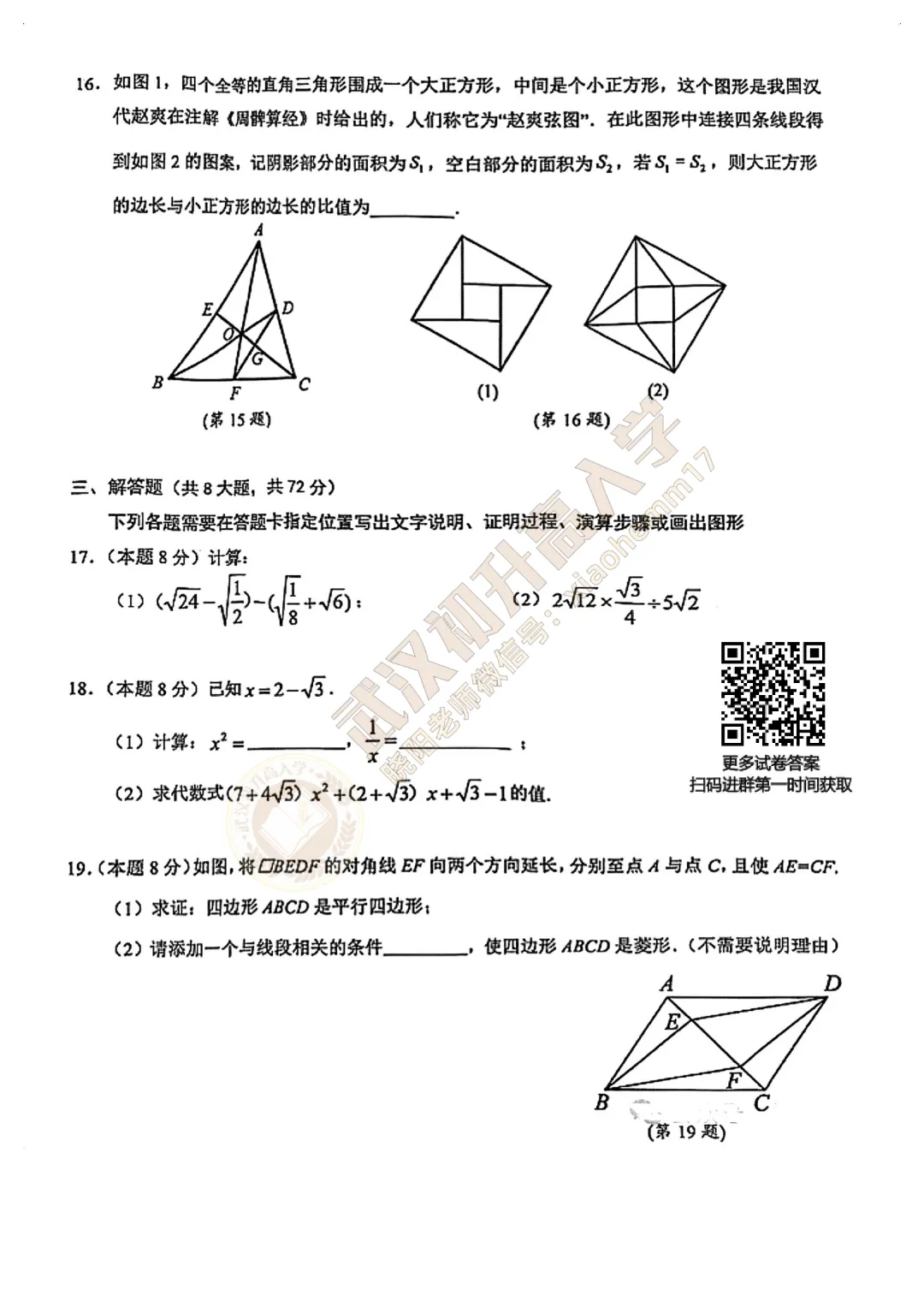 【八年级武珞路数学期中试卷】2024-2025下学期