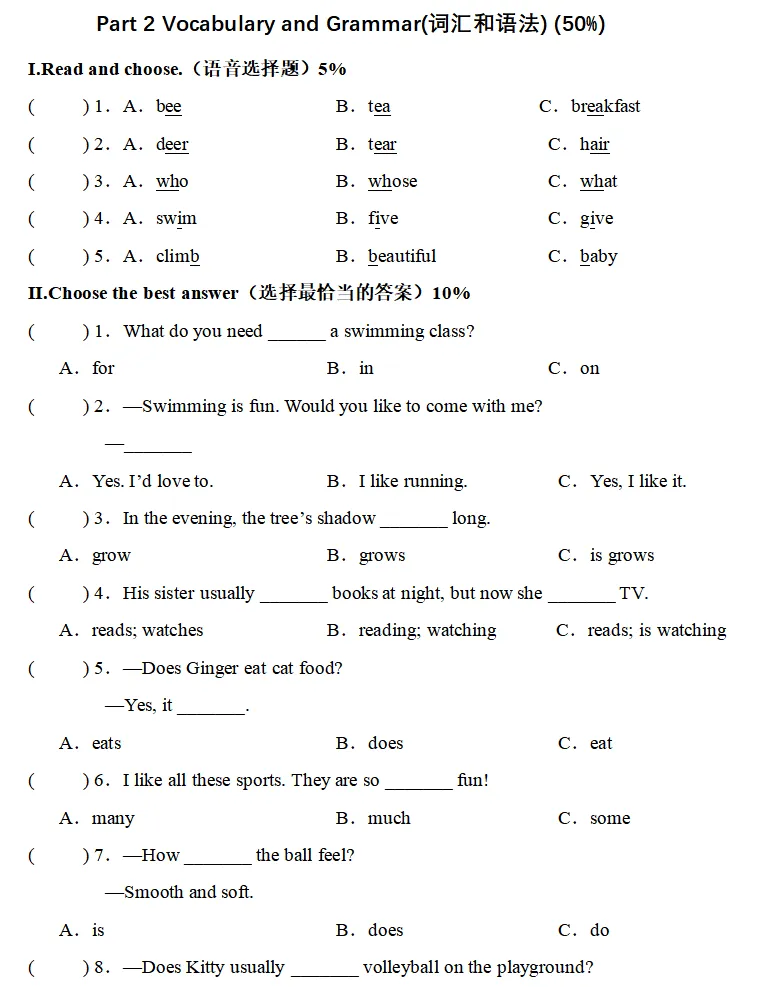 3月全国PET考试真题!附参考答案!