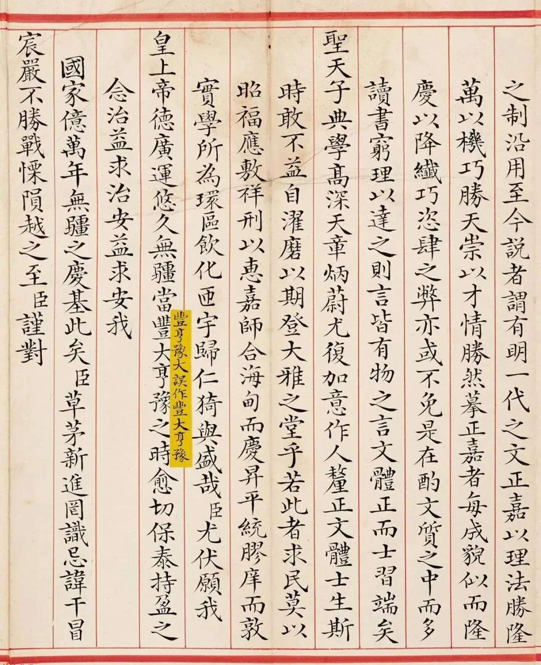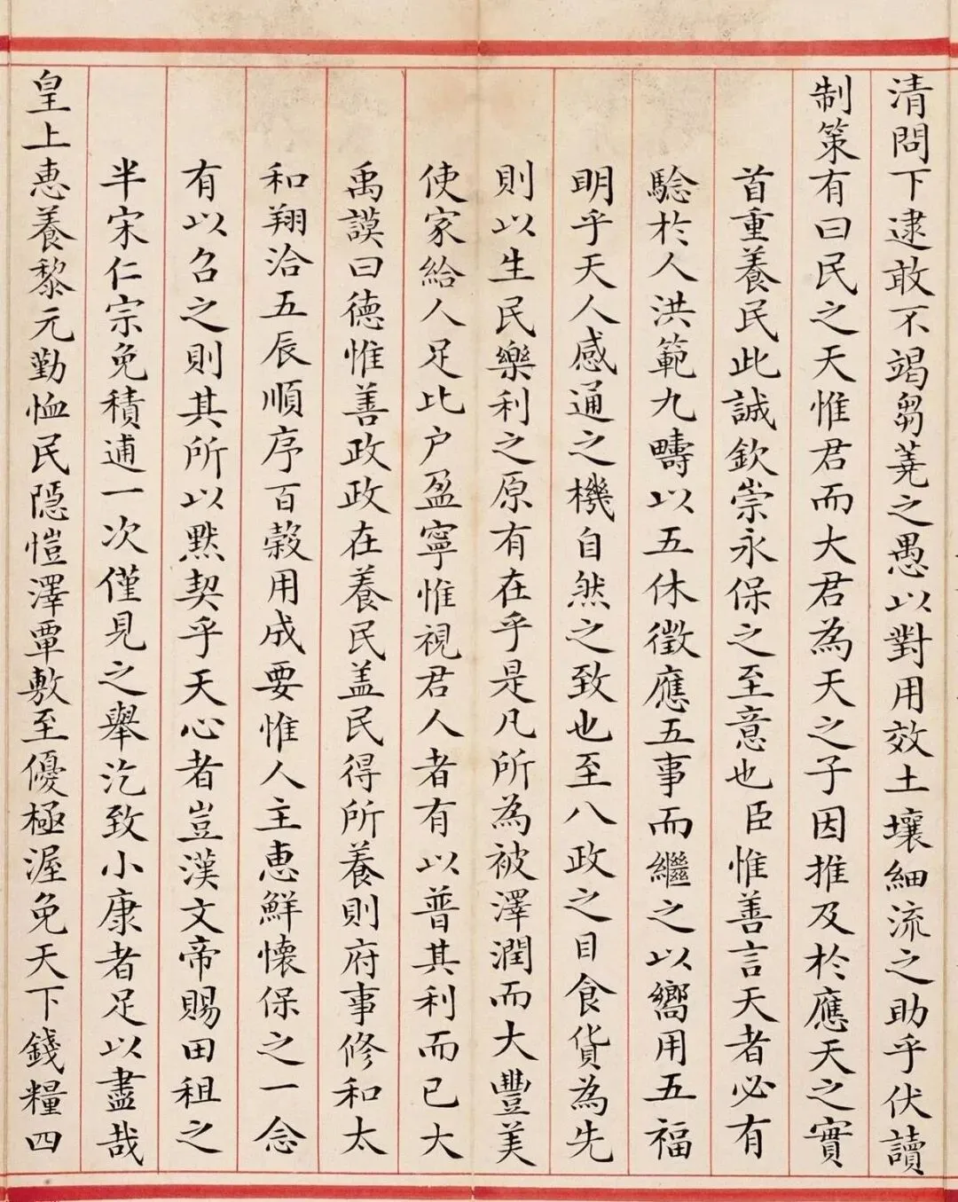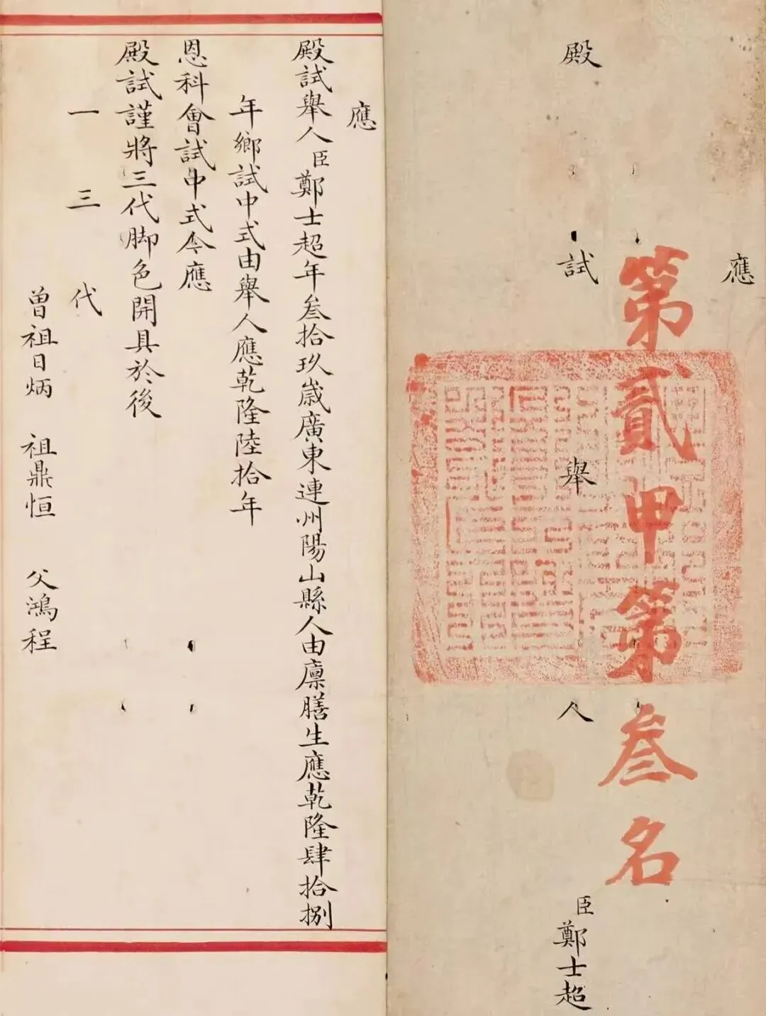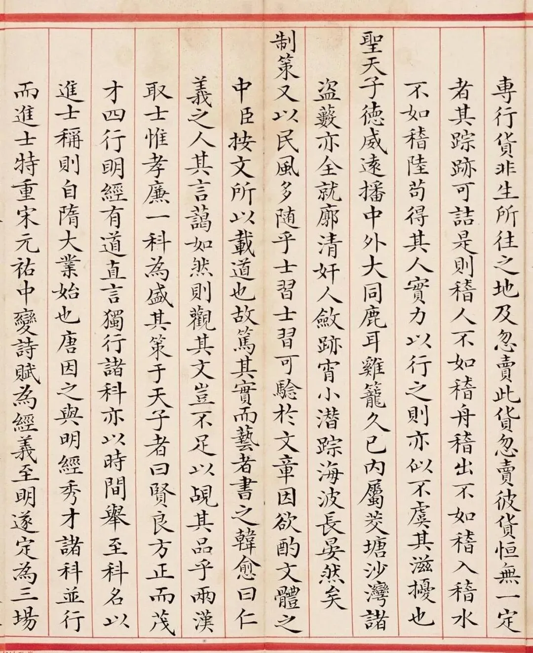 郑士超小楷《乾隆六十年恩科殿试卷》,堪称清代馆阁小楷巅峰之作。通篇以蝇头小楷书就,笔法精劲利落,点画挺括分明,转折方峻有度;结体方正匀净,端庄中含秀雅,规整而不板滞;墨色莹润如新,章法森然有序,排布疏密得宜。全文千字一气呵成,无一字涂改,既恪守殿试庙堂之法度,又兼融晋唐小楷之灵动气韵,尽显科举书艺的精工与儒臣的笔墨风骨。