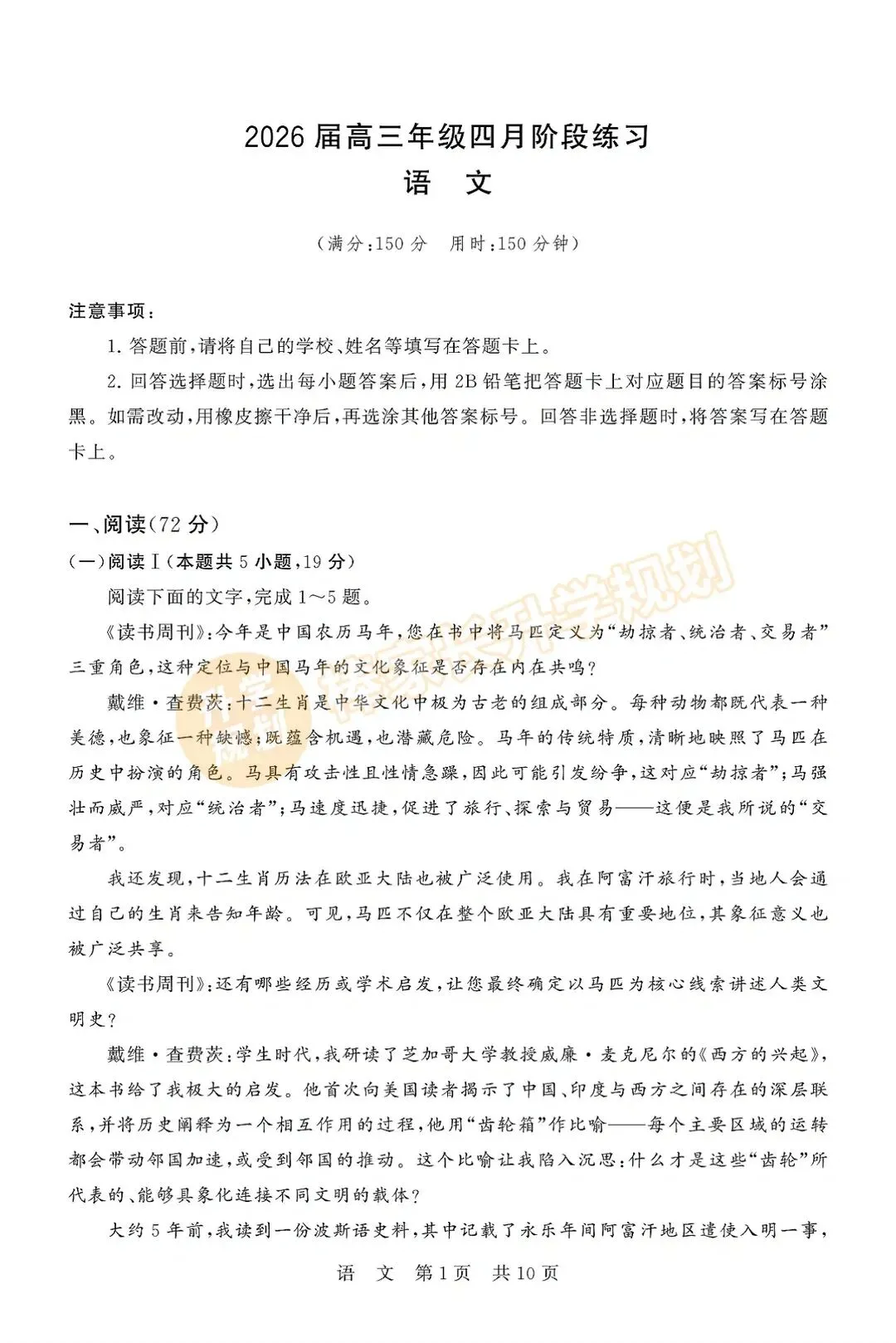 回复【十堰】,领取2026十堰高三3月联考试卷答案