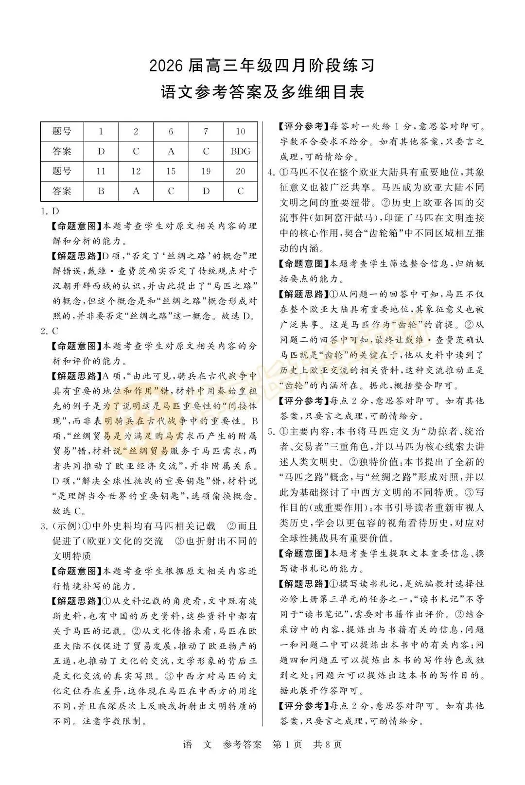回复【八市州】,领取2026湖北高三3月八市州联考试卷答案