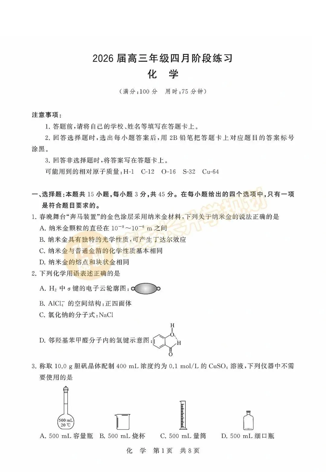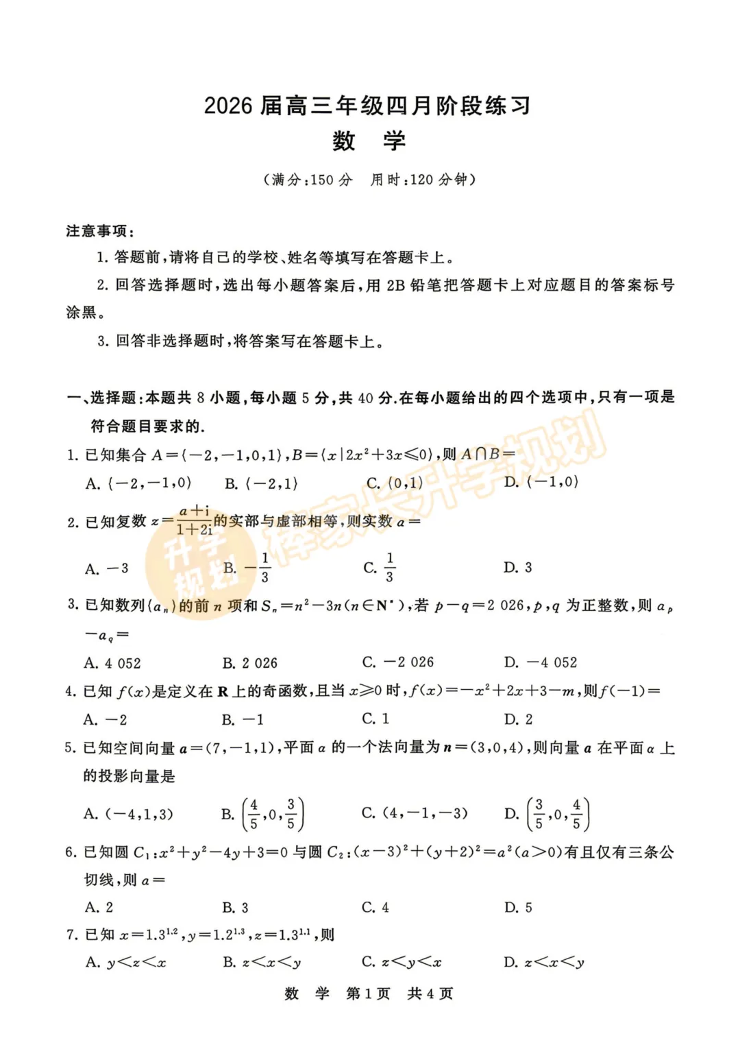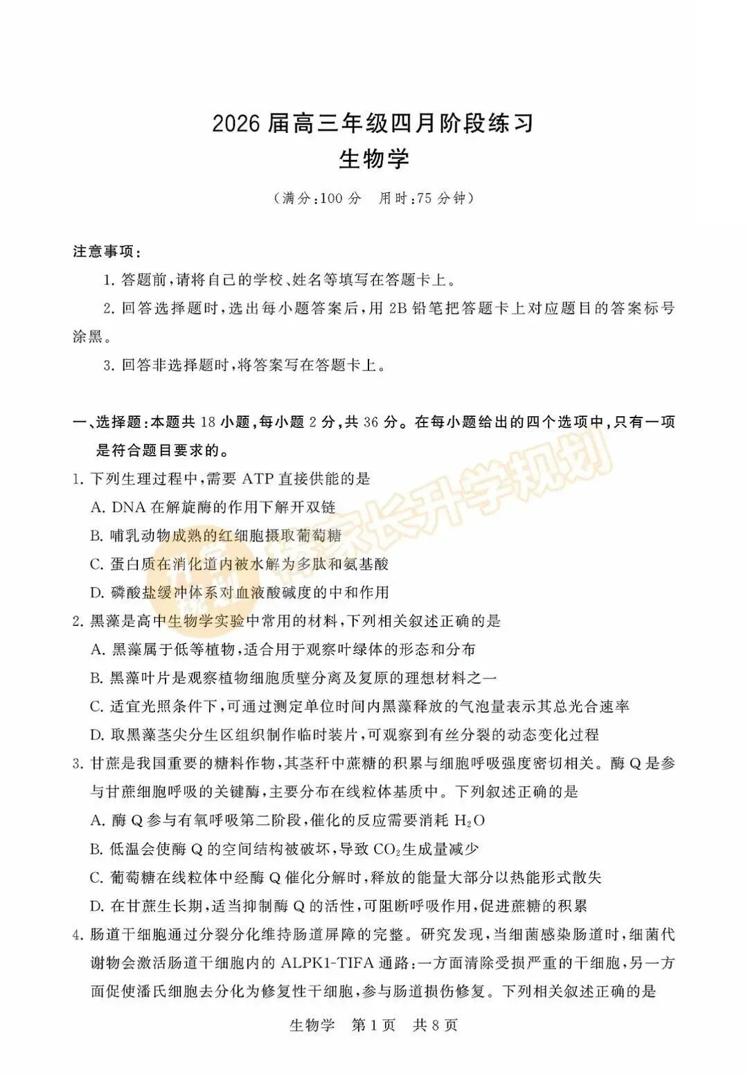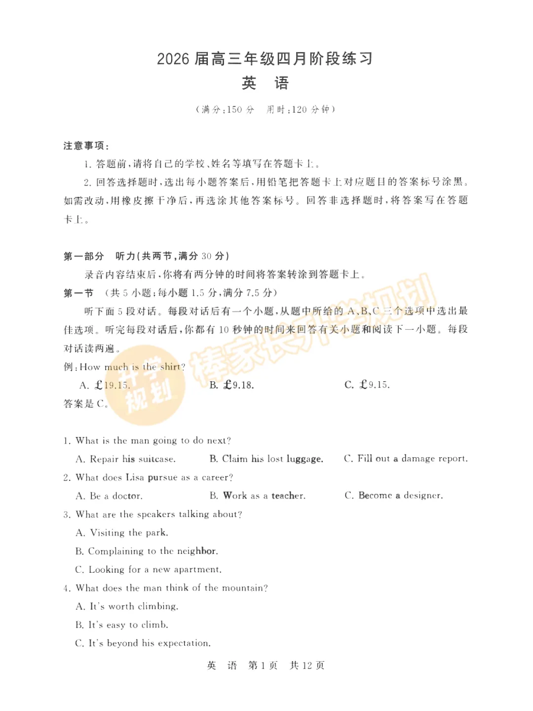 回复【黄冈】,领取2026黄冈高三3月联考试卷答案