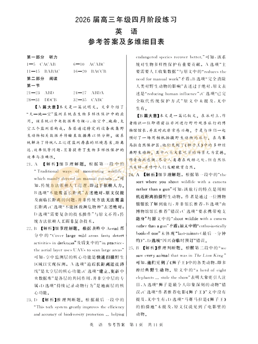 回复【十一校】,领取2026湖北高三十一校3月联考试卷答案