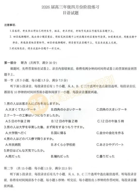 回复【荆州】,领取2026荆州高三3月联考试卷答案