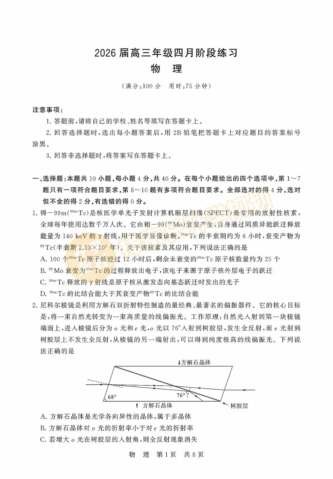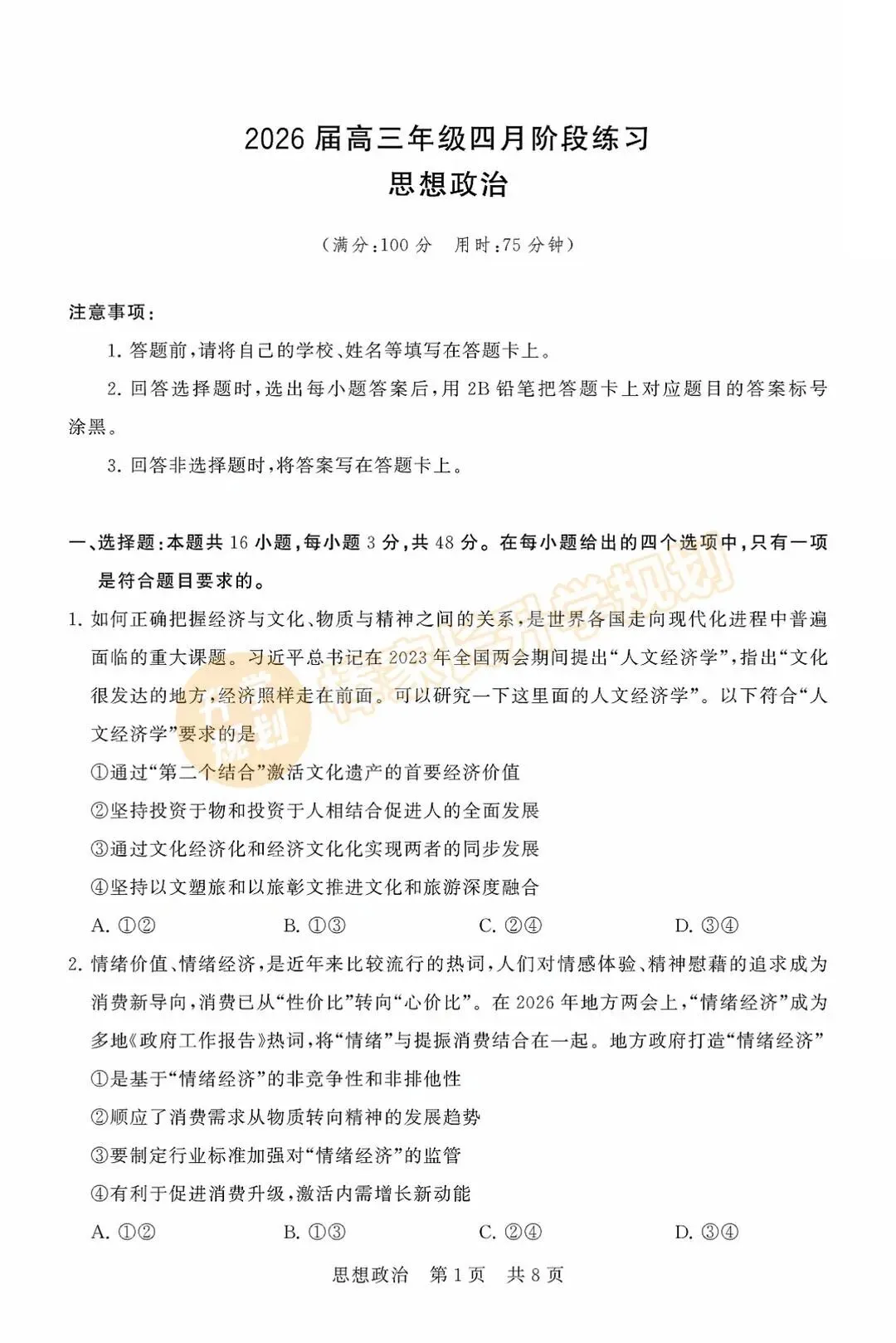 领取2026高三T8联考