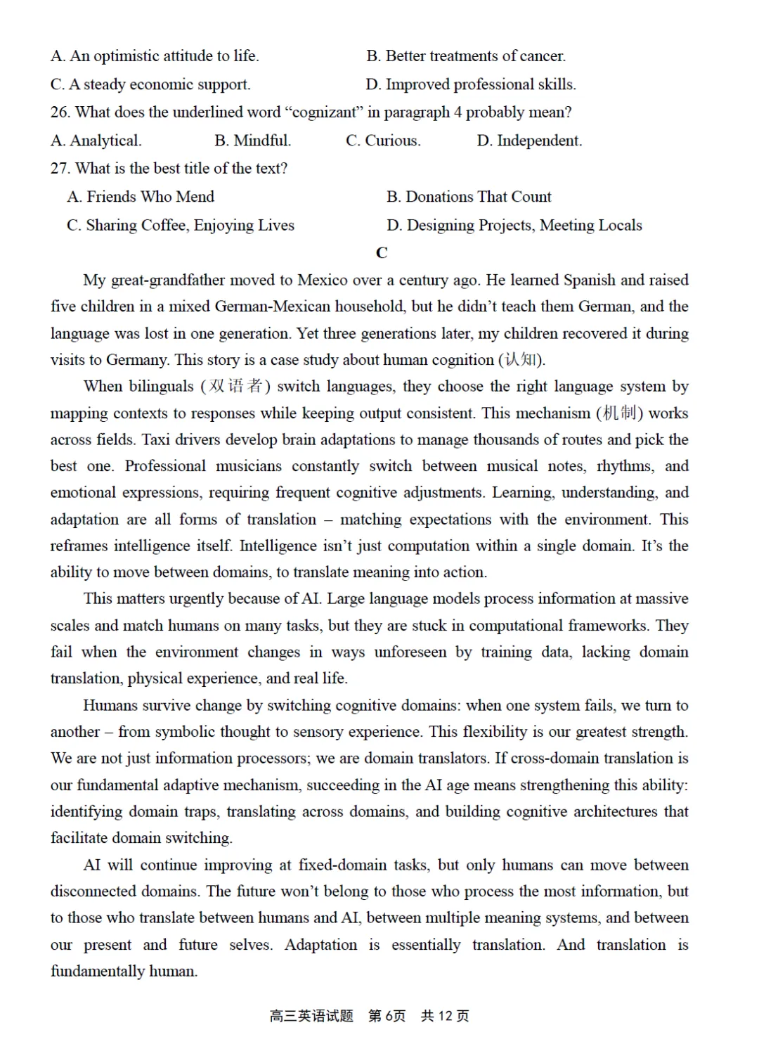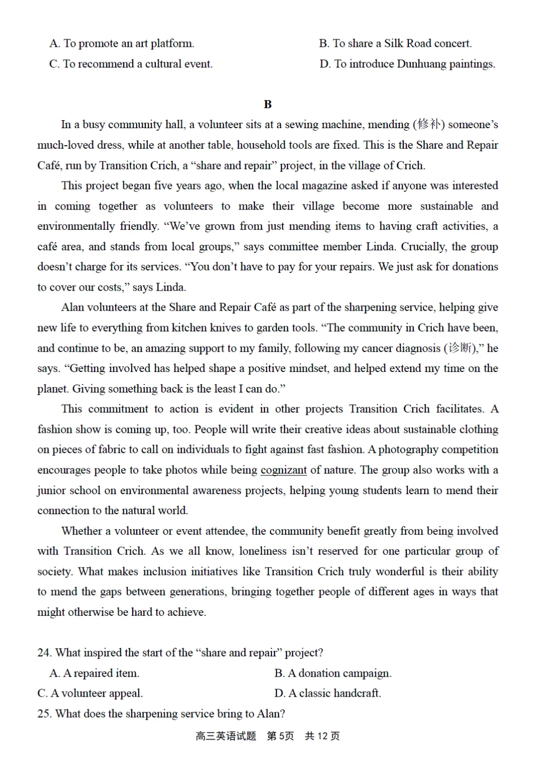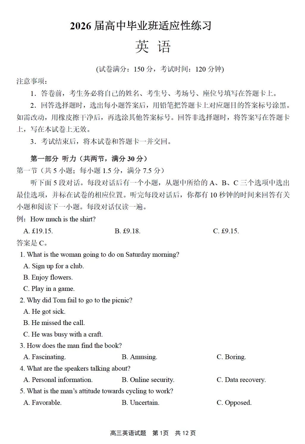 2026 届高中毕业班适应性练习题库英语听力部分录音稿