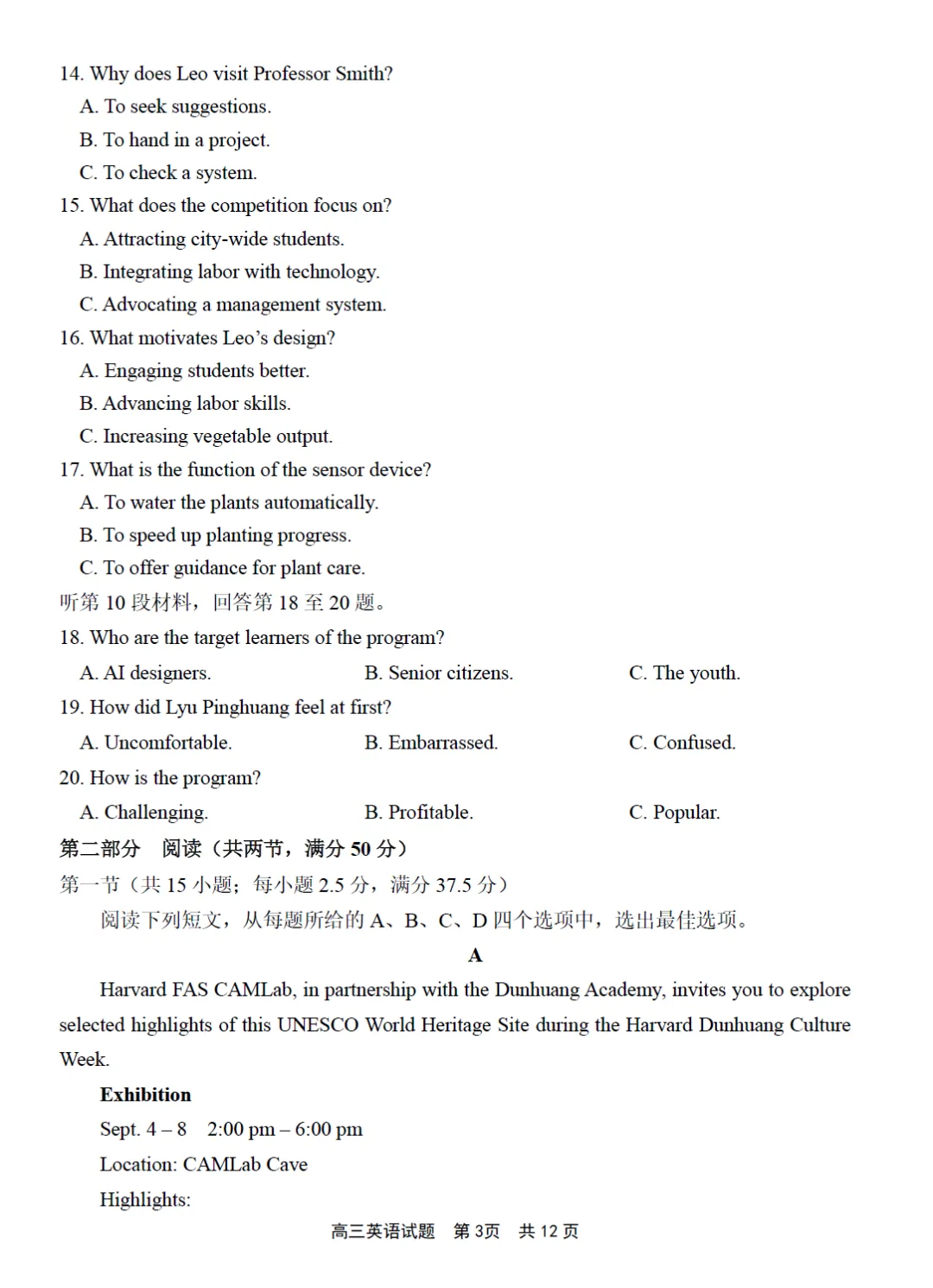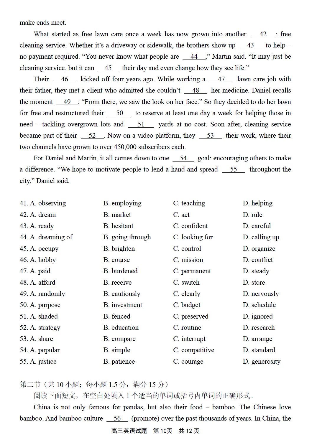 第二部分阅读(共两节,满分50分)
