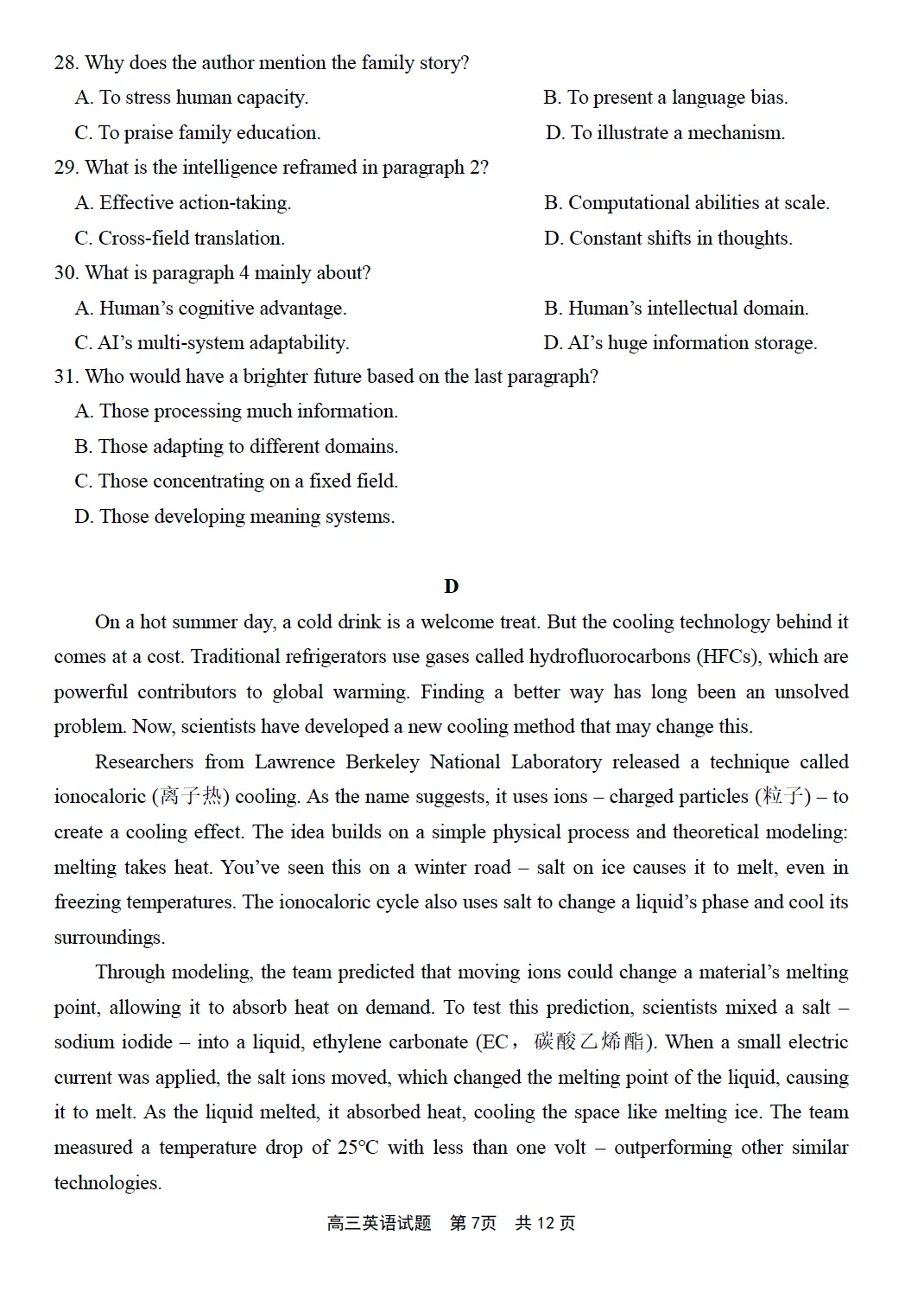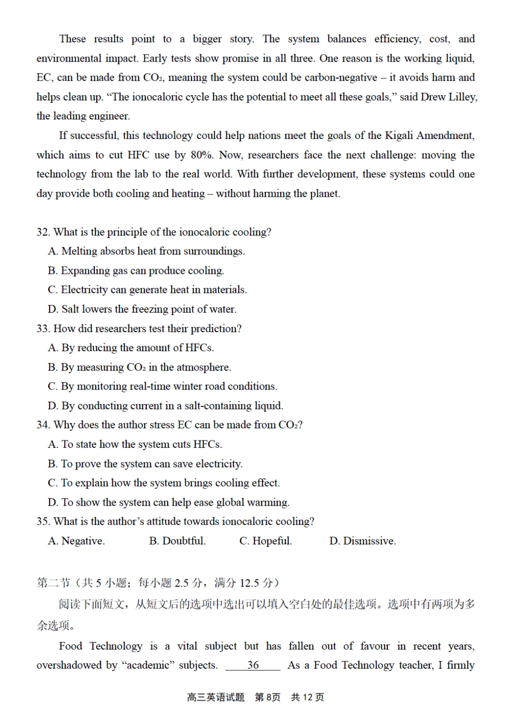 第二节(共5小题;每小题2.5分,满分12.5分)