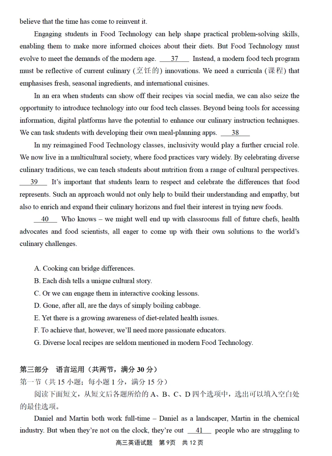 第三部分语言运用(共两节,满分30分)