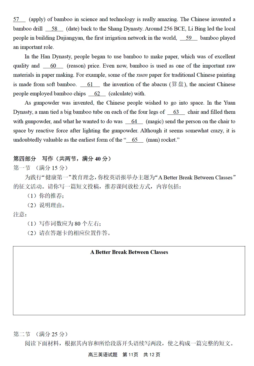 第四部分写作(共两节,满分40分)