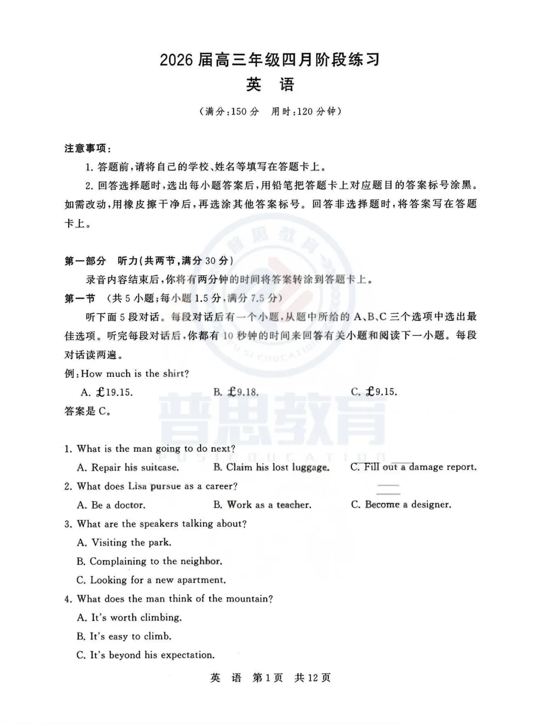 本次仅展示部分试卷内容,
