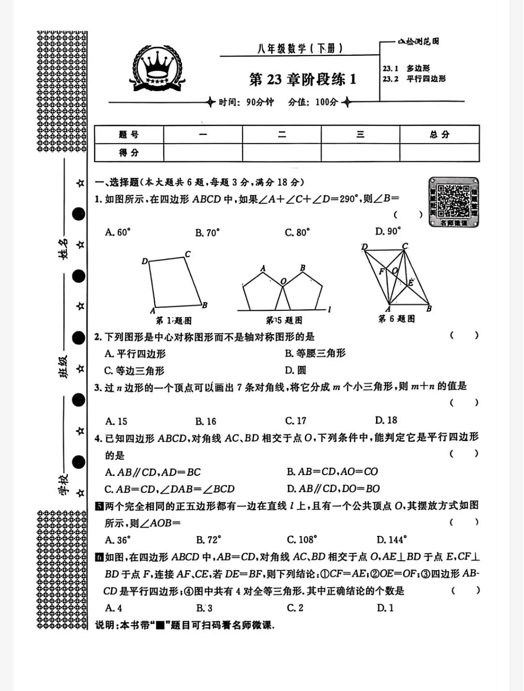 长郡集团初三期中试卷分析(附原卷及答案)