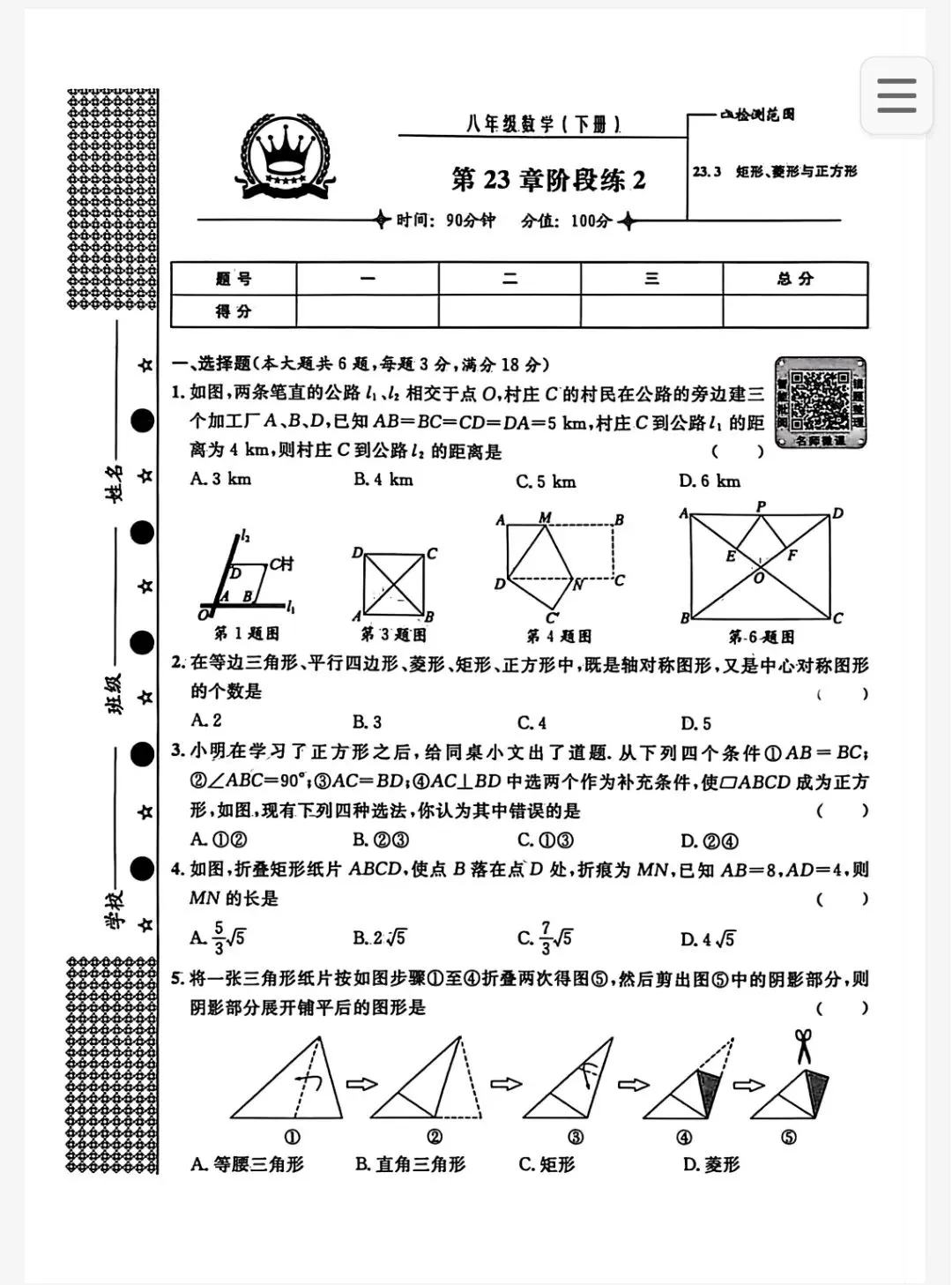 >26春初中八下数学Ⅰ英语金试卷《满分练习与测试》上海专用