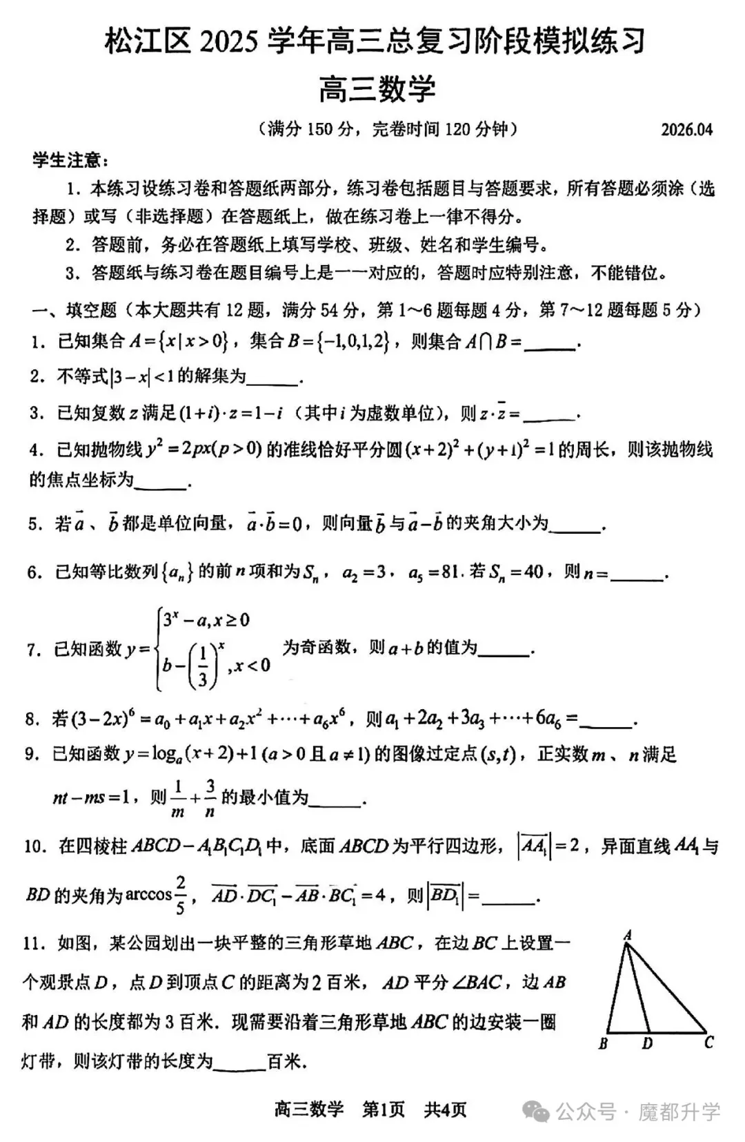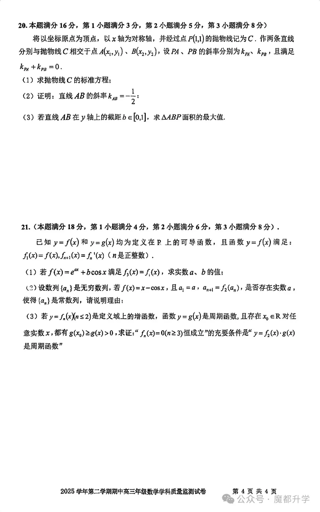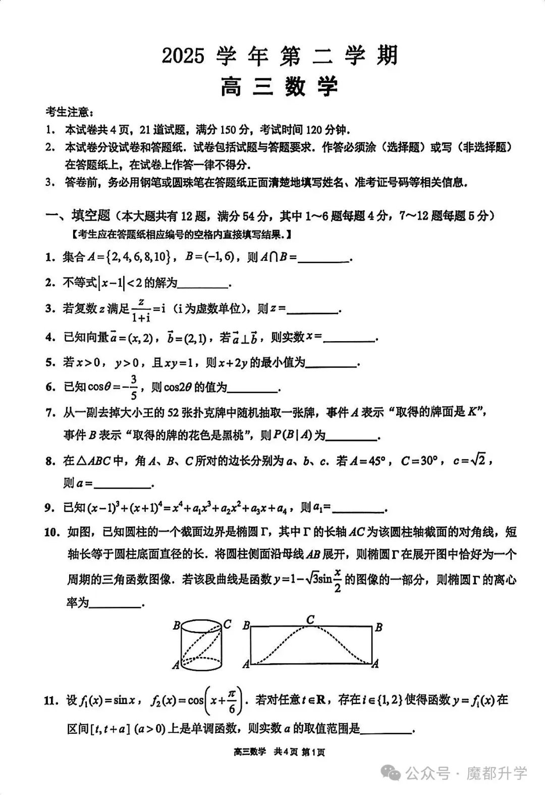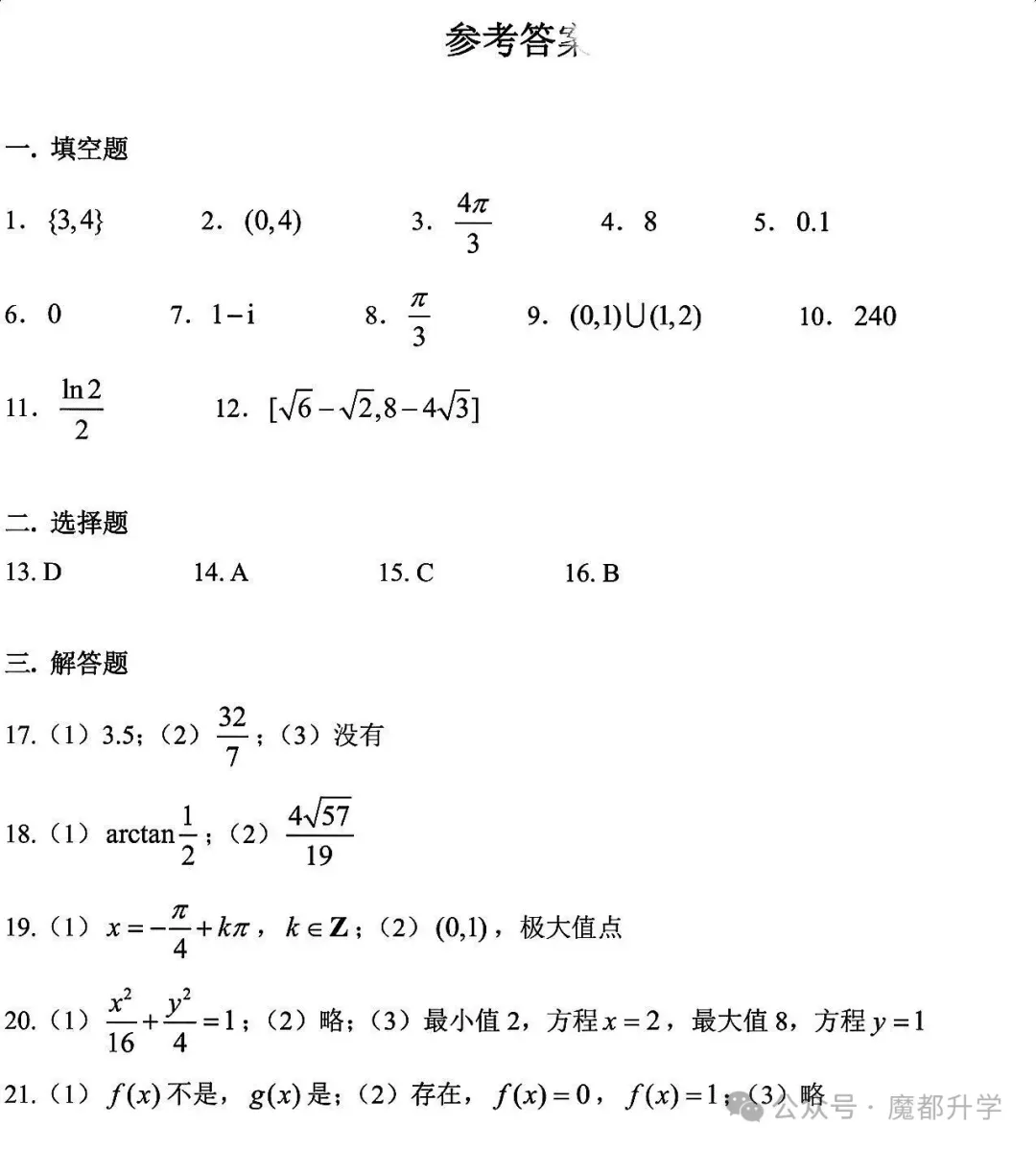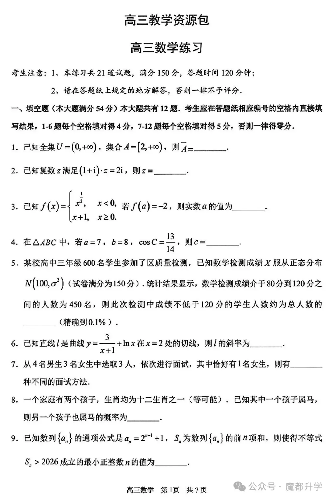 >最新上海8个区的高三数学二模试卷分享!<附电子版领取>