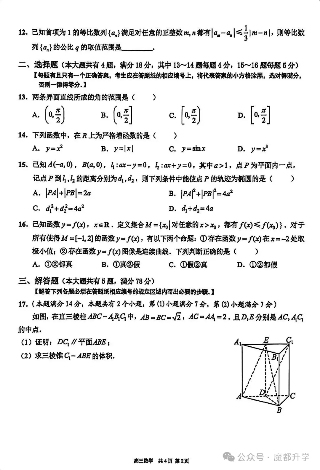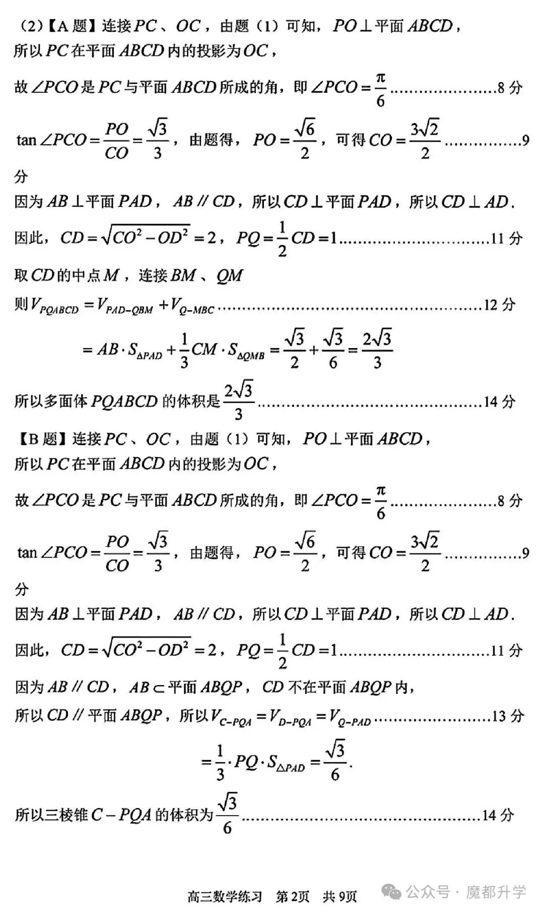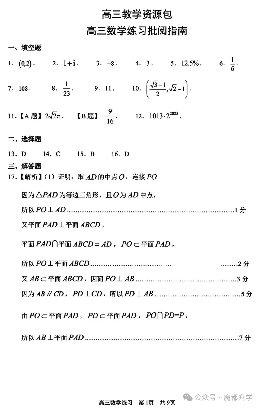 最新上海8个区的高三数学二模试卷分享!<附电子版领取>